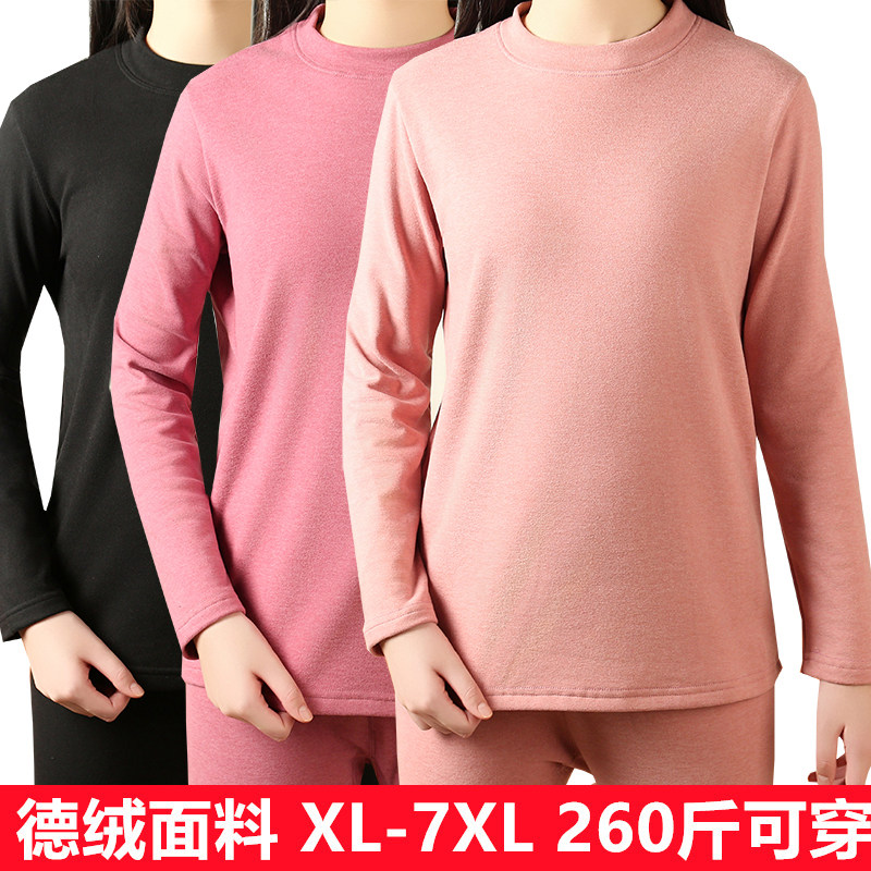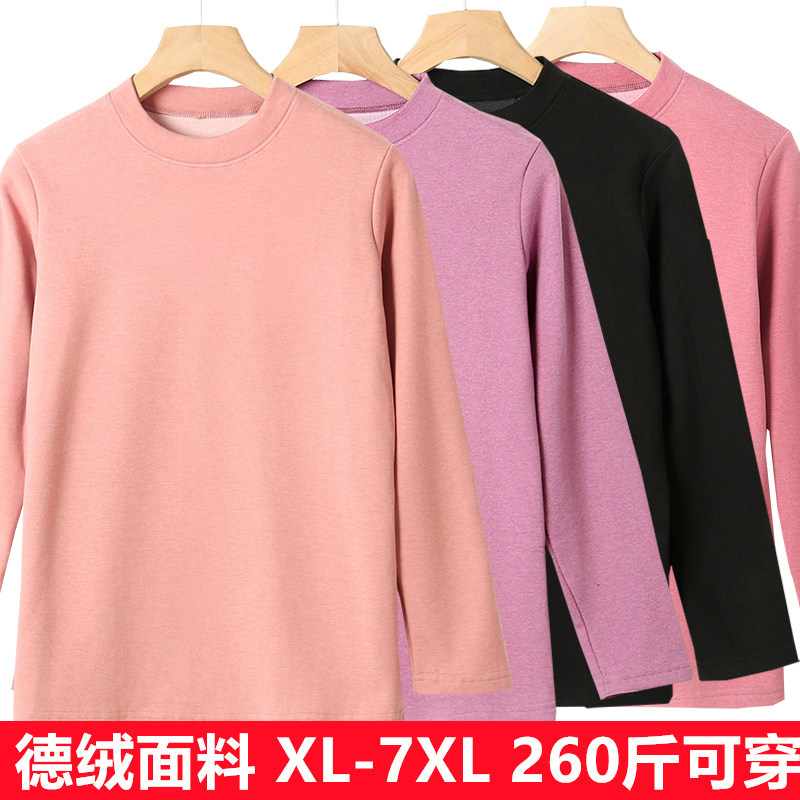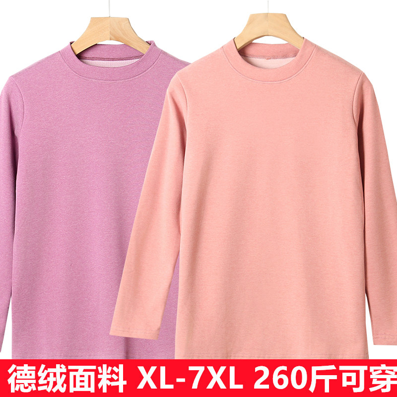德绒女中高领秋衣宽松加肥加大码弹力中老年人长袖保暖内衣秋冬