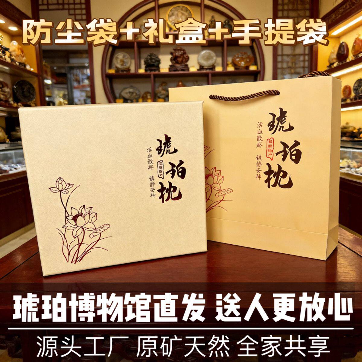 天然原矿抚顺琥珀蜜蜡枕头养生枕保健男女护颈助睡眠琥珀药珀枕