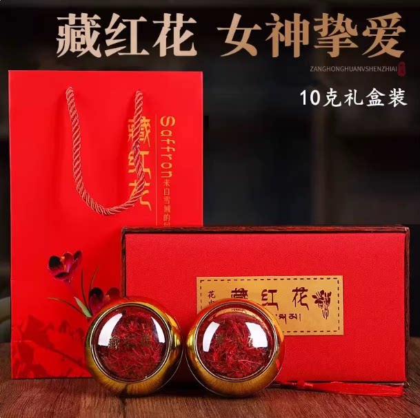 藏红花礼盒装特级正品西藏官方旗舰店伊朗中药材泡脚泡水喝的功效