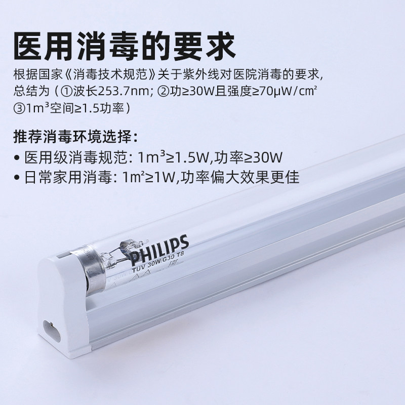 飞利浦吊装悬挂式紫外线消毒灯幼儿园车间食堂餐饮紫光杀菌消毒灯
