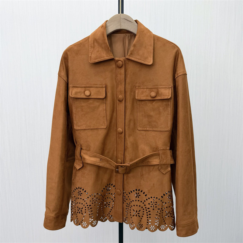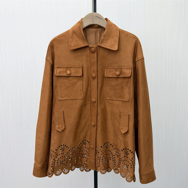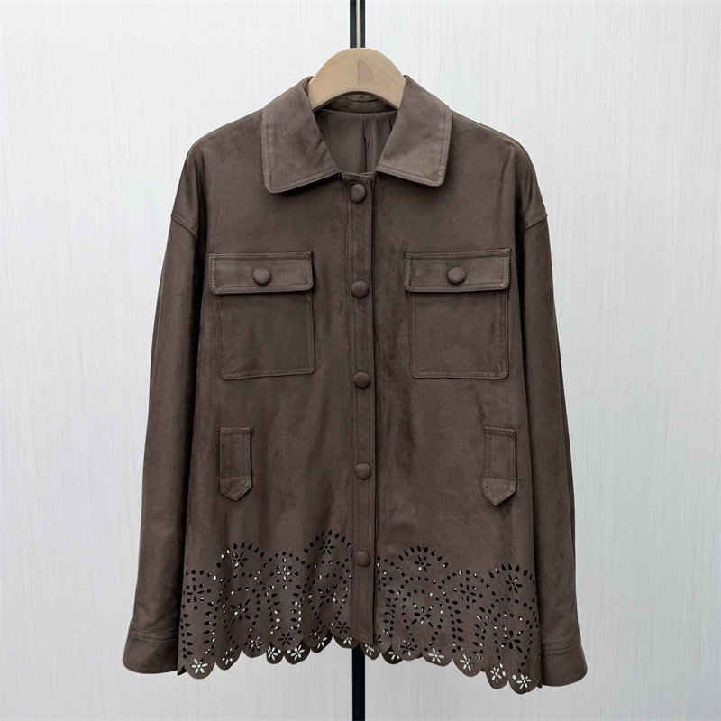 S●2026春季新品 复古美拉德麂皮外套女宽松休闲百搭风衣夹克552