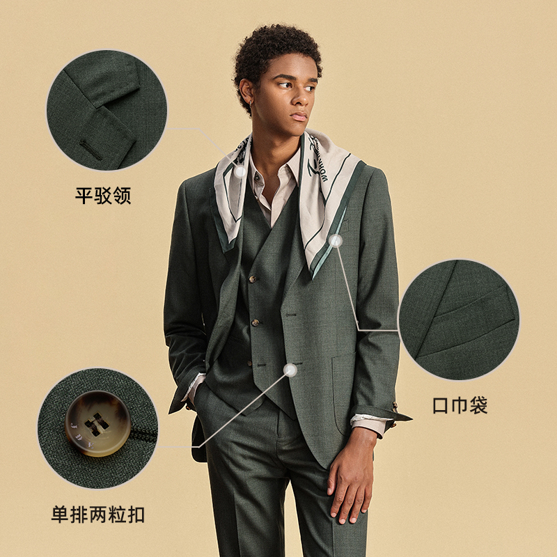 JDV男装春夏新品商场同款绿色单排扣正装西装西服外套SMM4007