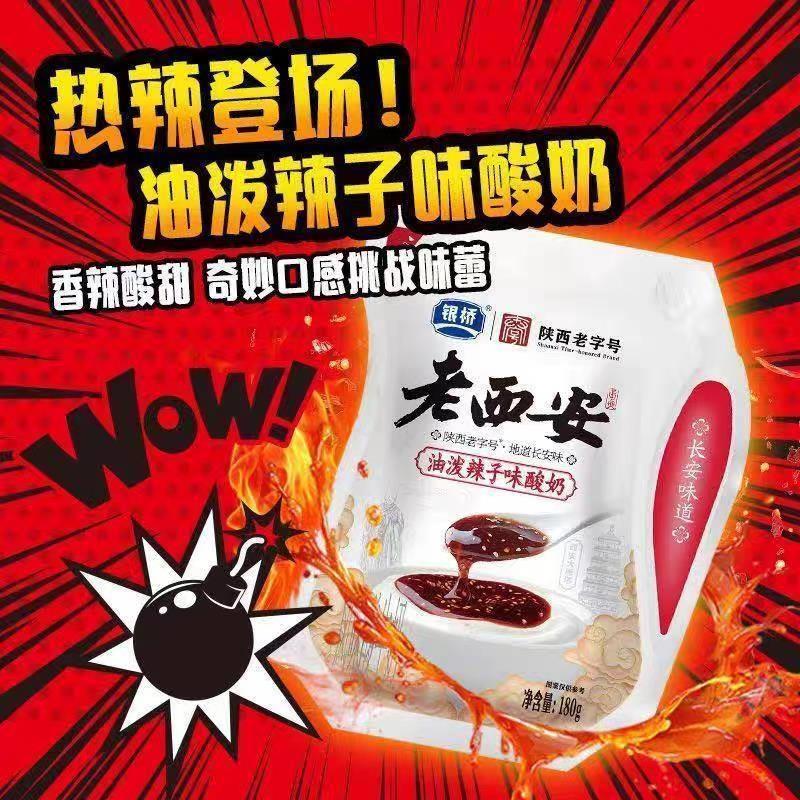 新货银桥老西安油泼辣子味特色酸奶地道长安味180g/袋装