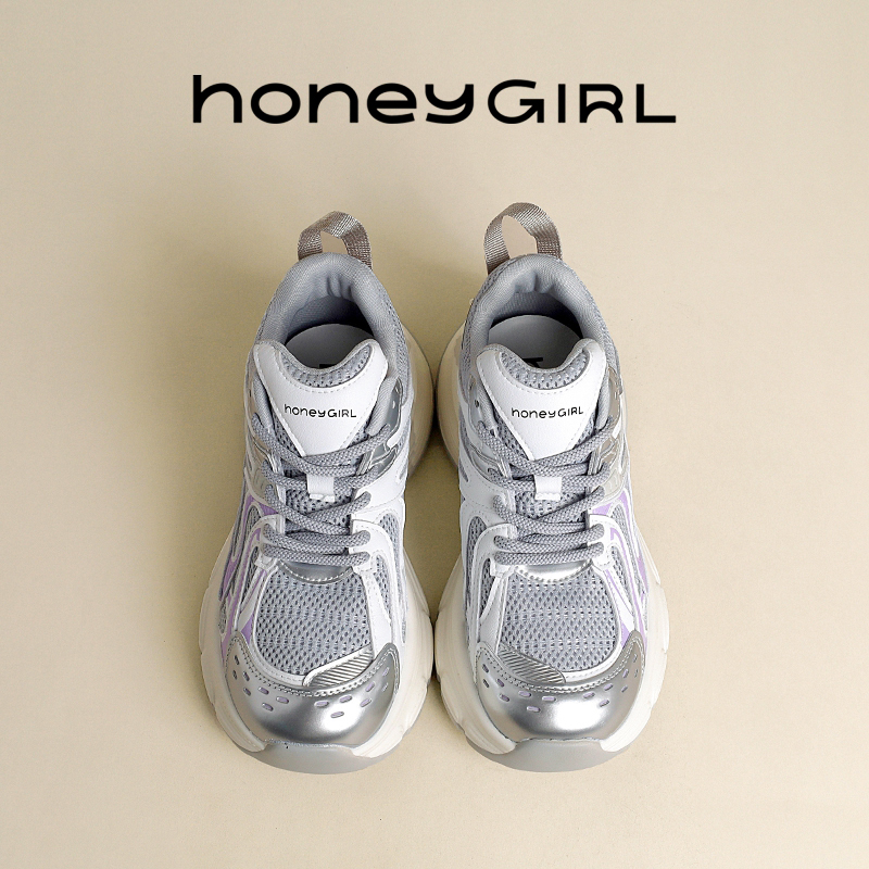 honeyGIRL复古老爹鞋女厚底时尚休闲鞋2025新款网面透气小白鞋女