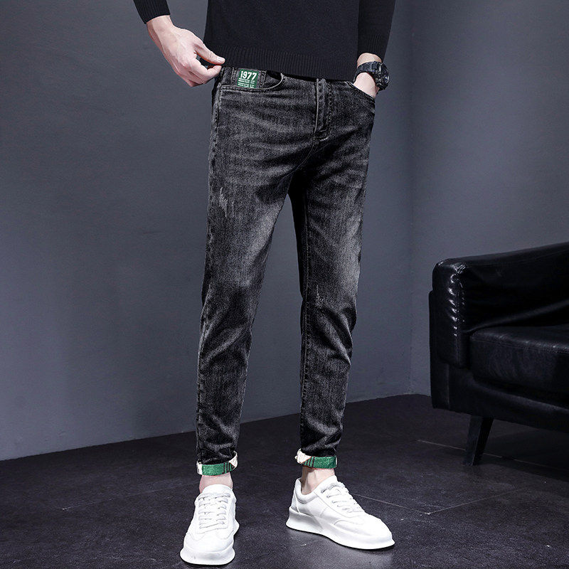 Yishion以纯正品牛仔裤男士修身直筒秋冬2025新款秋季弹力加绒休