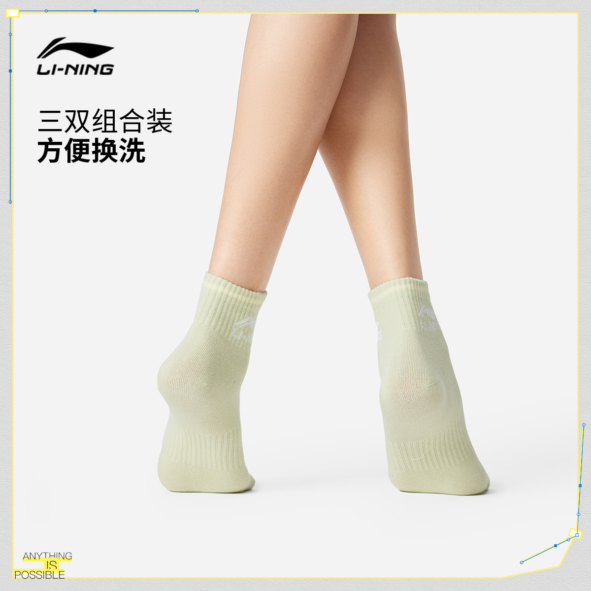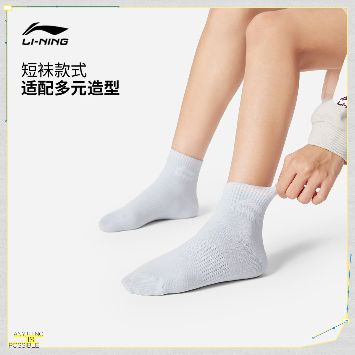 李宁短筒短袜三双装女士官方2026新款运动生活系列三双装运动袜子