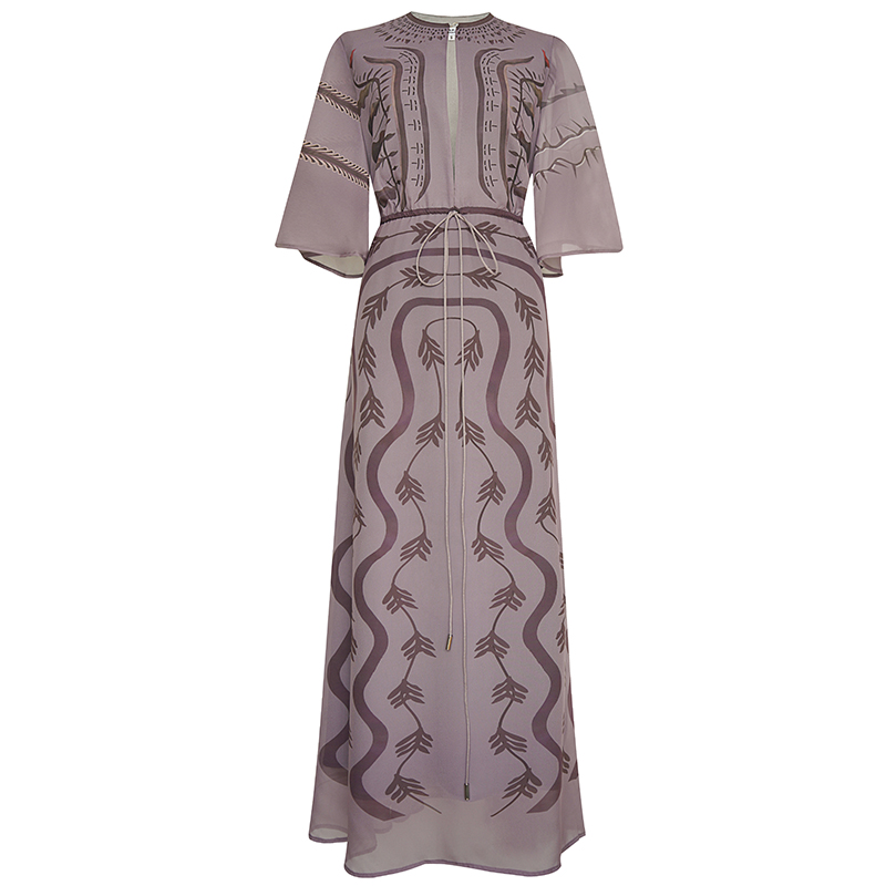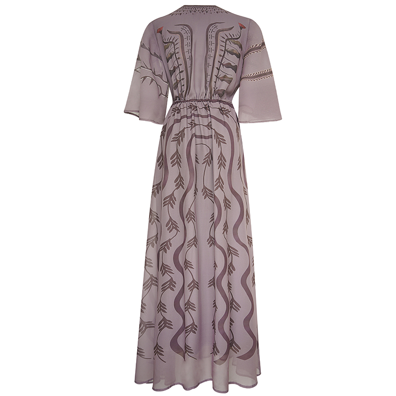 法式设计感印花褐色连衣裙绝美裙子收腰优雅气质长裙2025春季新款