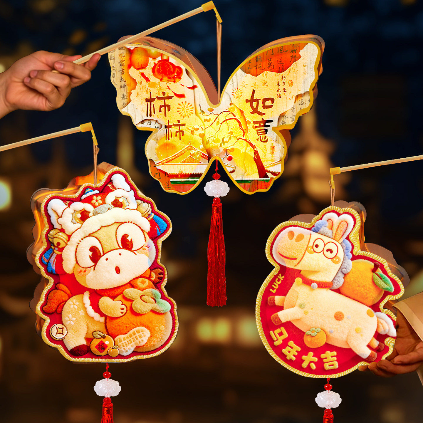 马年卡通原木发光手提DIY灯笼包