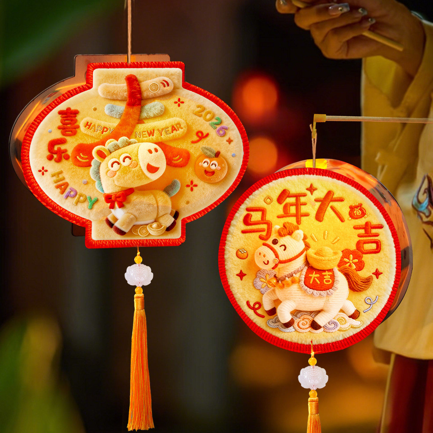 2026马年新年发光手提灯笼儿童diy手工材料包春节花灯元宵节装饰