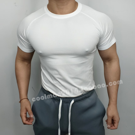 百搭休闲运动T恤男士健身短袖速干圆领撸铁训练上衣半截袖修身衣