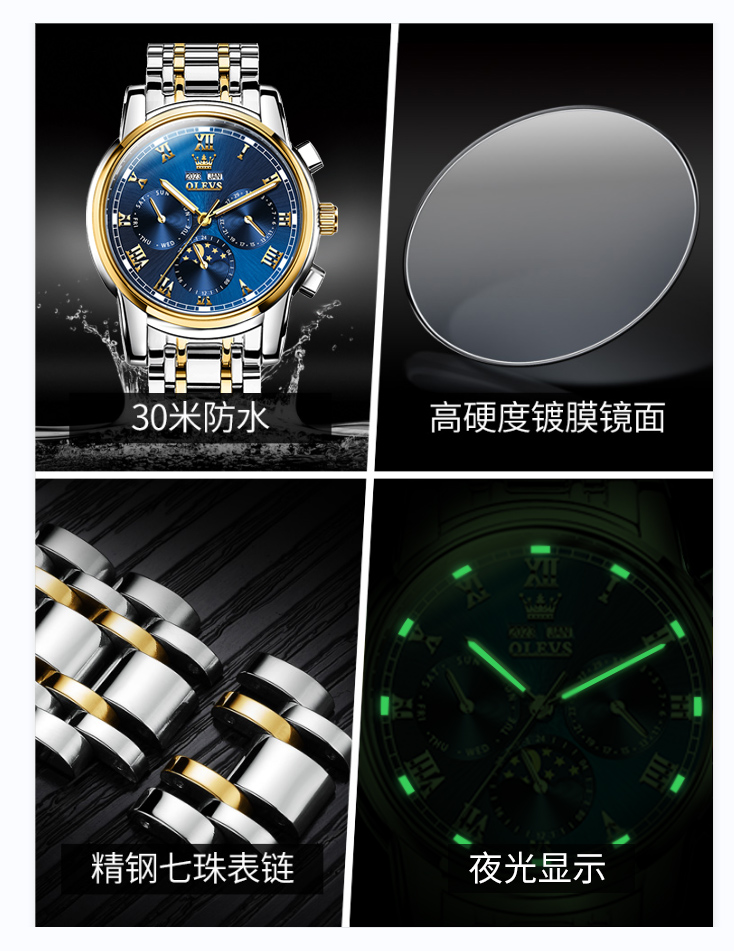 瑞士认证正品牌男士手表机械表全自动月相钢带商务防水名式款十大