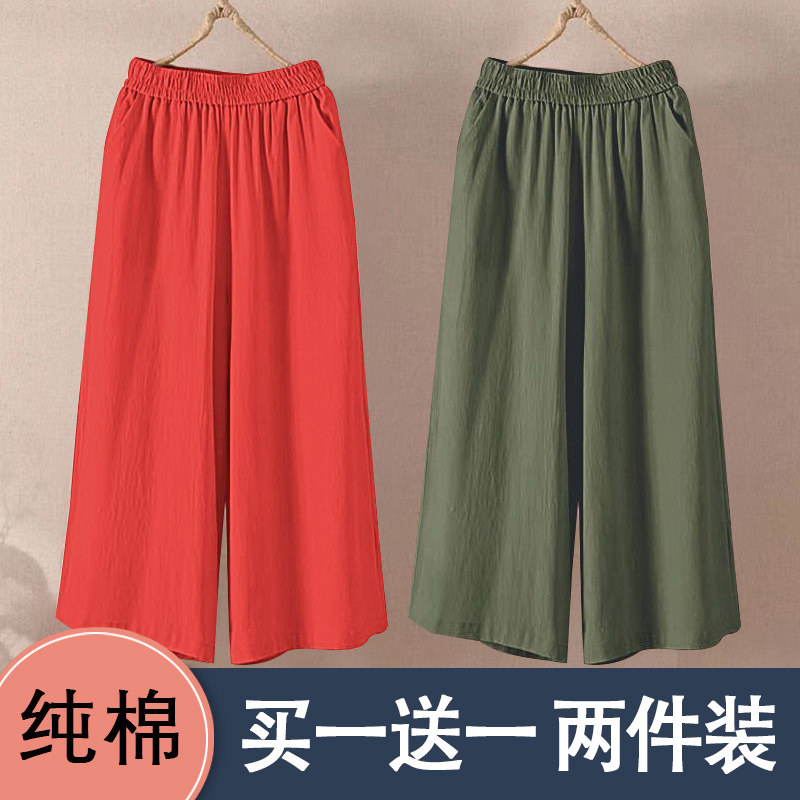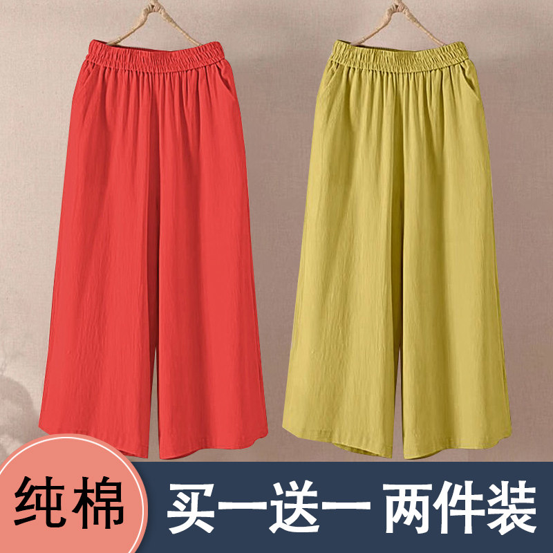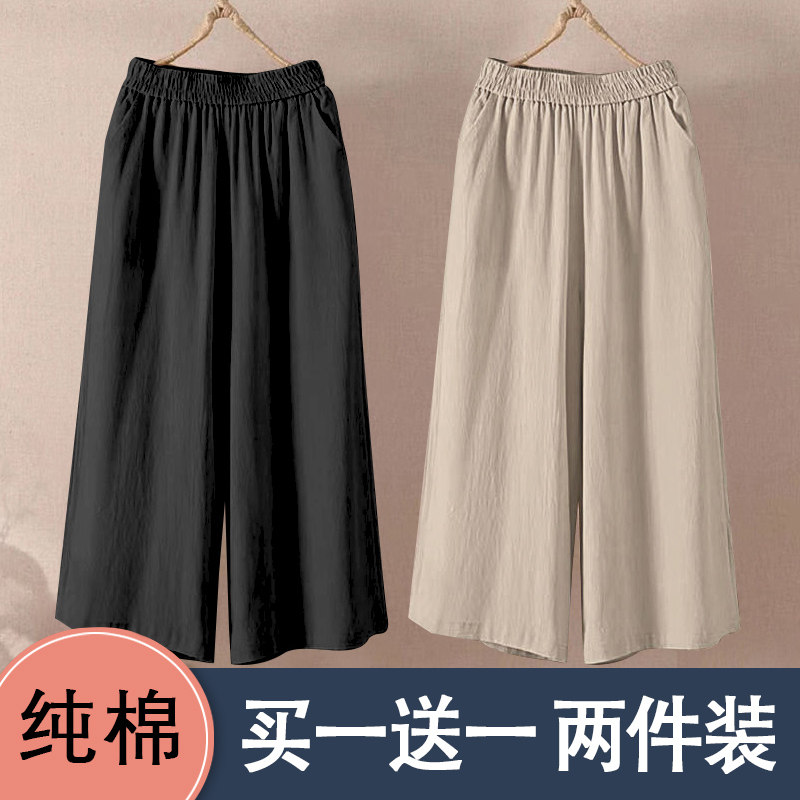 阔腿裤纯色夏季女装新款垂感休闲裤女纯棉亚麻裤宽松七分裤女薄款