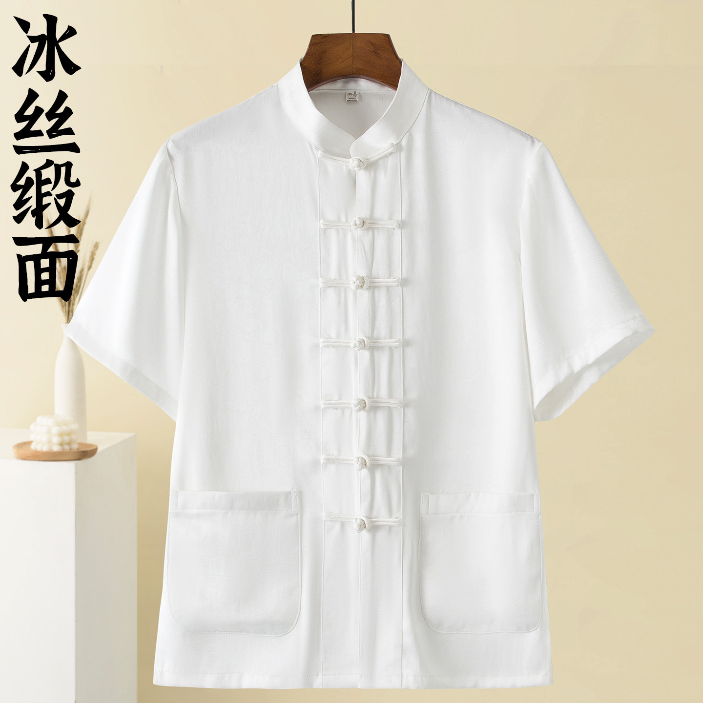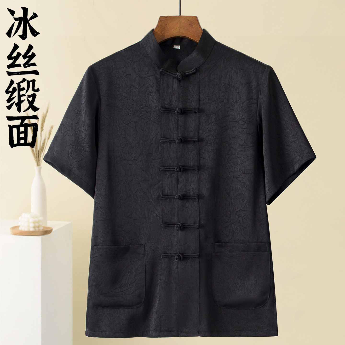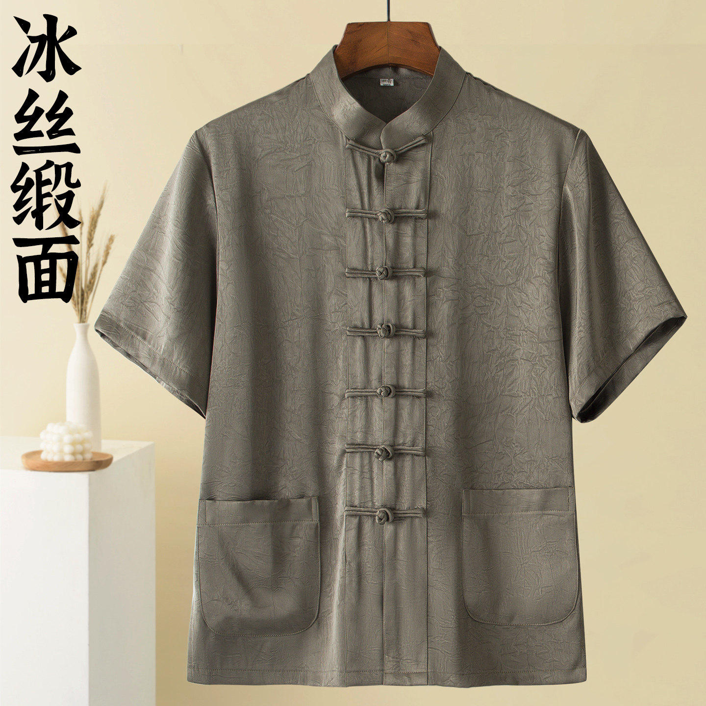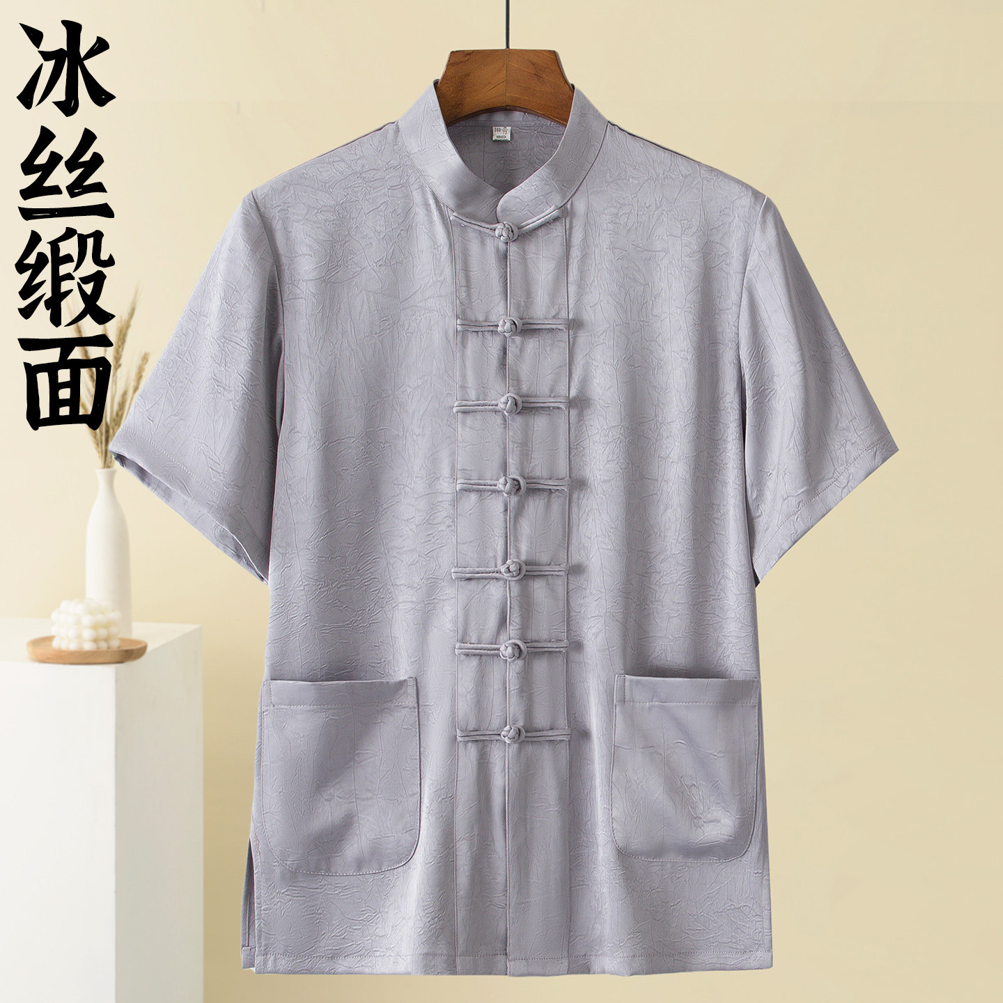 超垂顺无皱顺滑面料短袖唐装