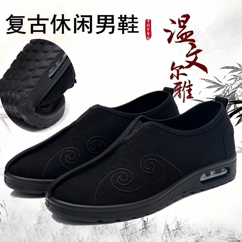 老北京布鞋男中老年爸爸鞋休闲复古懒人鞋轻便透气防滑软底一脚蹬