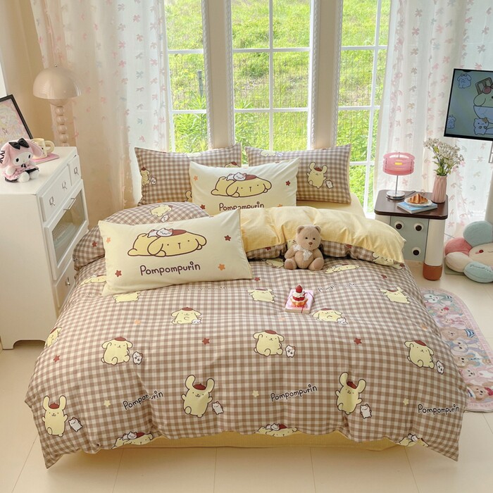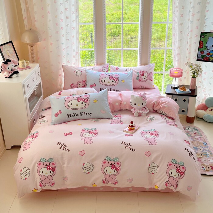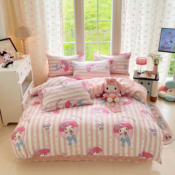 库洛米公主风纯棉床上四件套儿童女孩床品全棉被套宿舍床单三件套