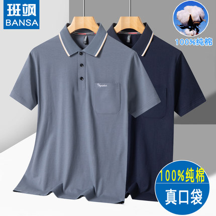2025夏季爸爸装中老年男士短袖t恤纯棉50-60岁老头汗衫商务POLO衫