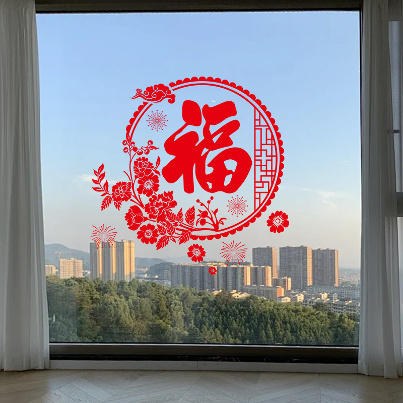 2026年福字贴春节新年元旦装饰窗花玻璃门贴静电贴画过年布置用品