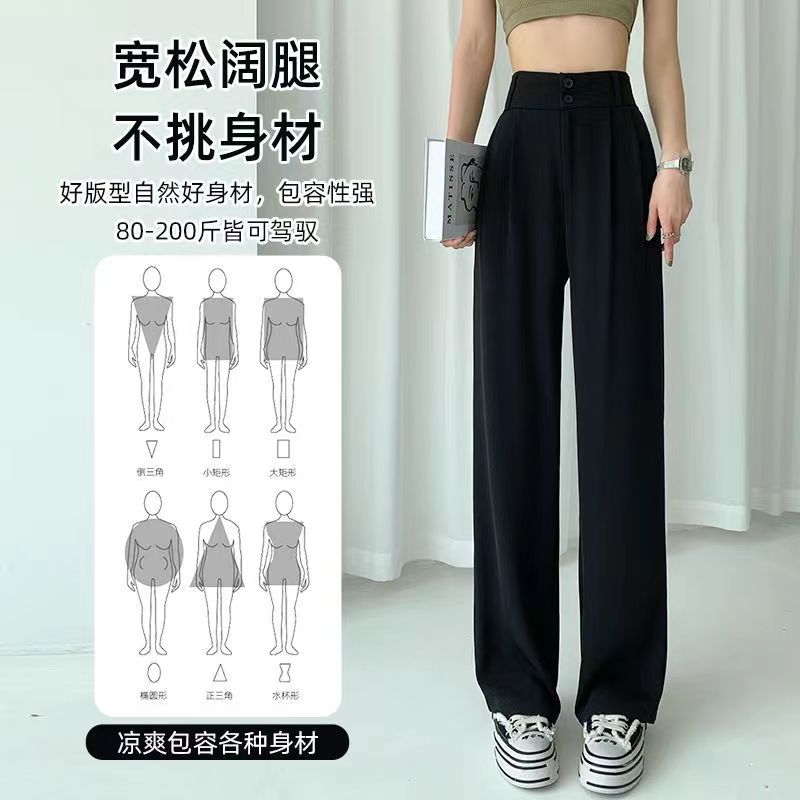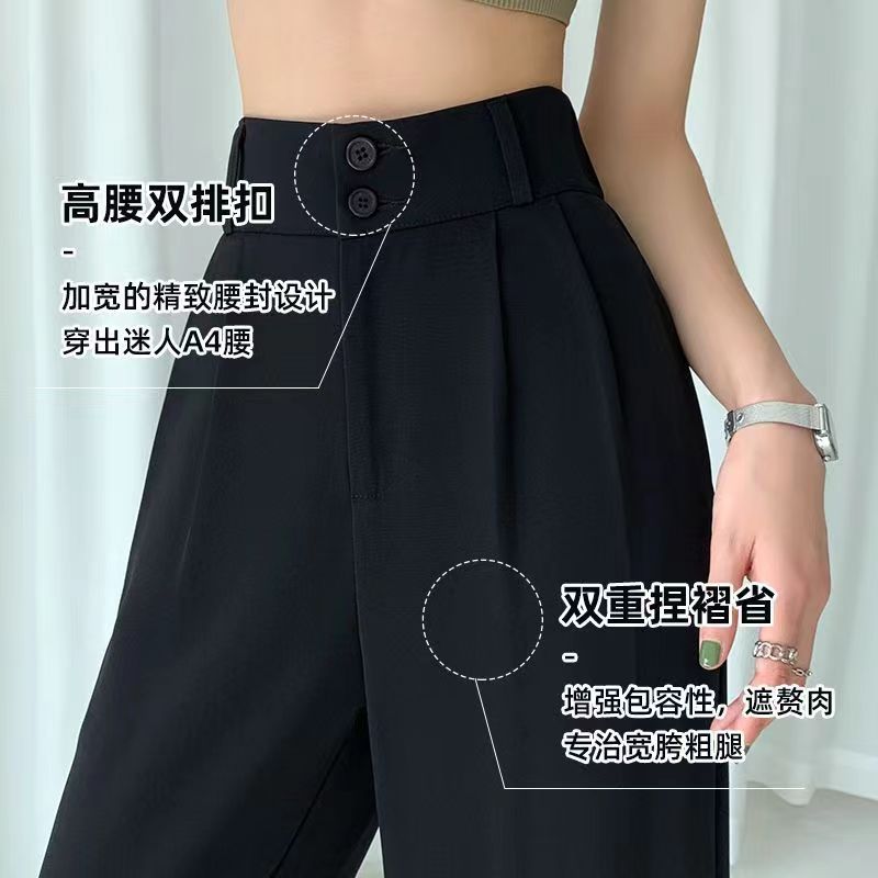 加长版高个子175黑色薄款阔腿裤女高腰西装裤宽松拖地直筒裤垂感