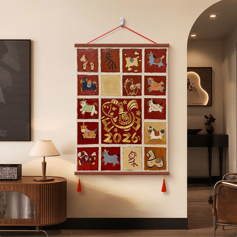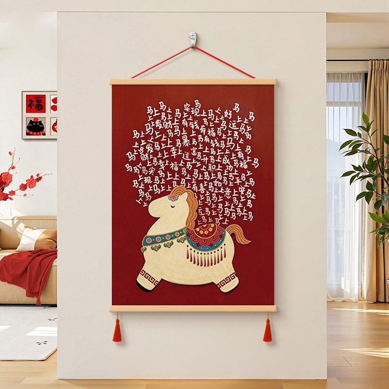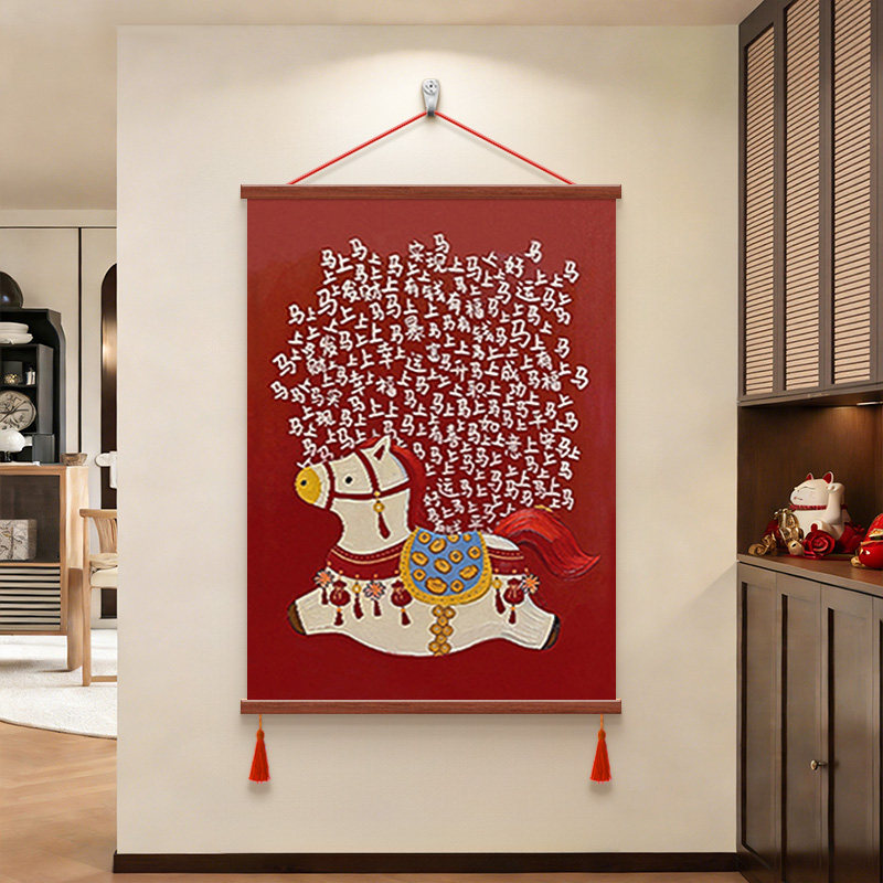马上有钱客厅沙发背景墙壁装饰画寓意好马年玄关壁画2026新年挂画