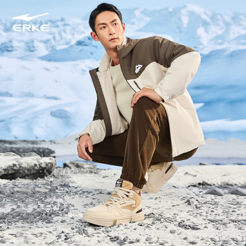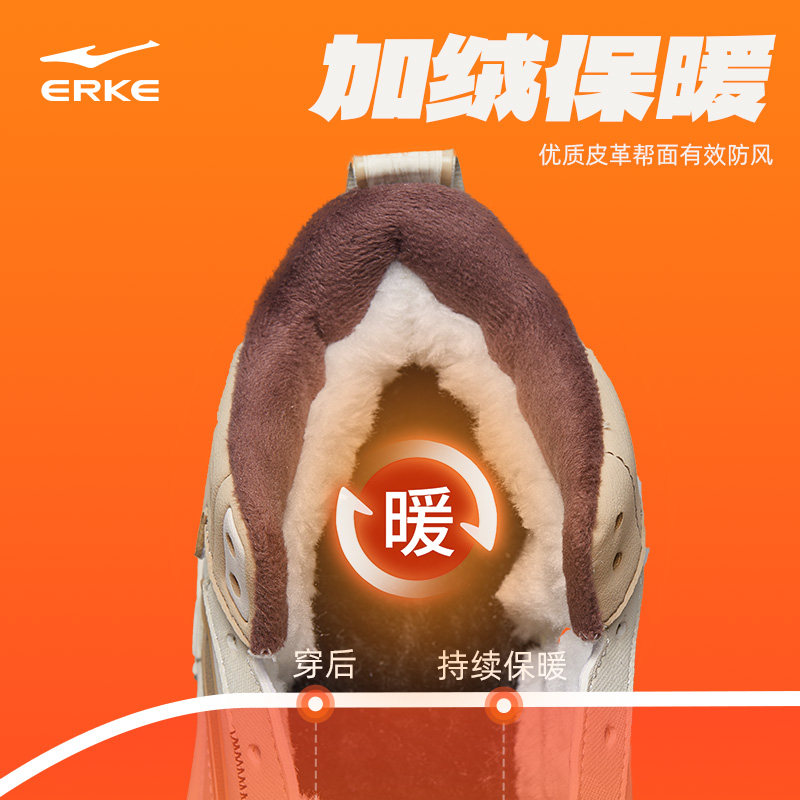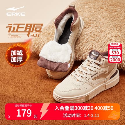 征服3鸿星尔克板鞋男鞋厚底高帮情侣鞋冬季棉鞋男款加绒运动鞋女
