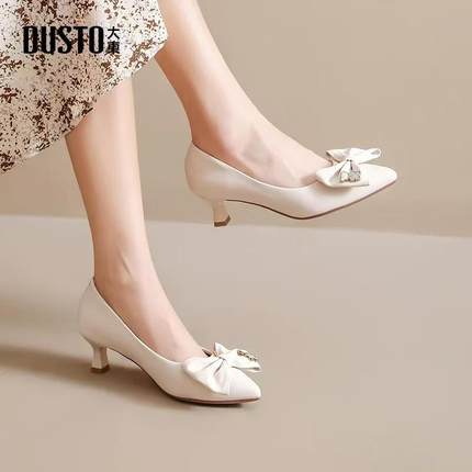 大东高跟鞋女鞋24春新款甜美蝴蝶结尖头细跟套脚中跟单鞋24C1117