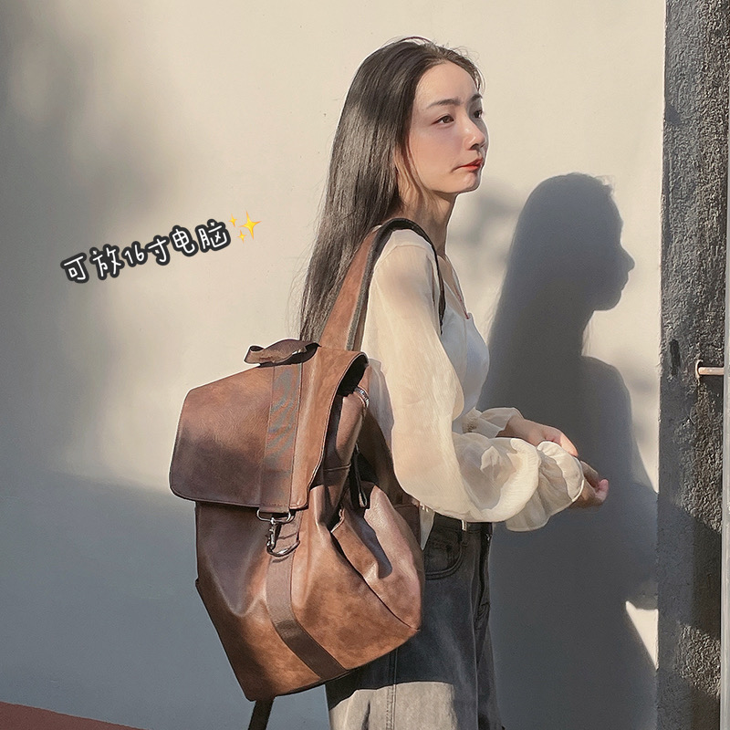 潮牌双肩背包女生2023书包软皮学院风16寸电脑大容量韩版日系旅行