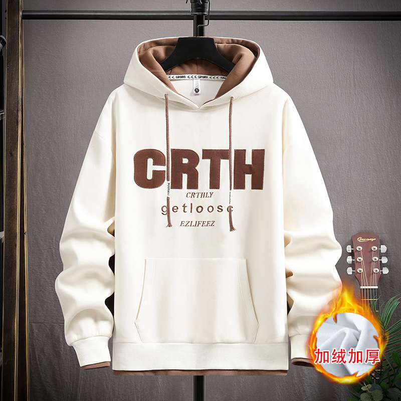 青少年2025冬连帽加绒卫衣套装男款生孩初中高中学生帅气潮流以純