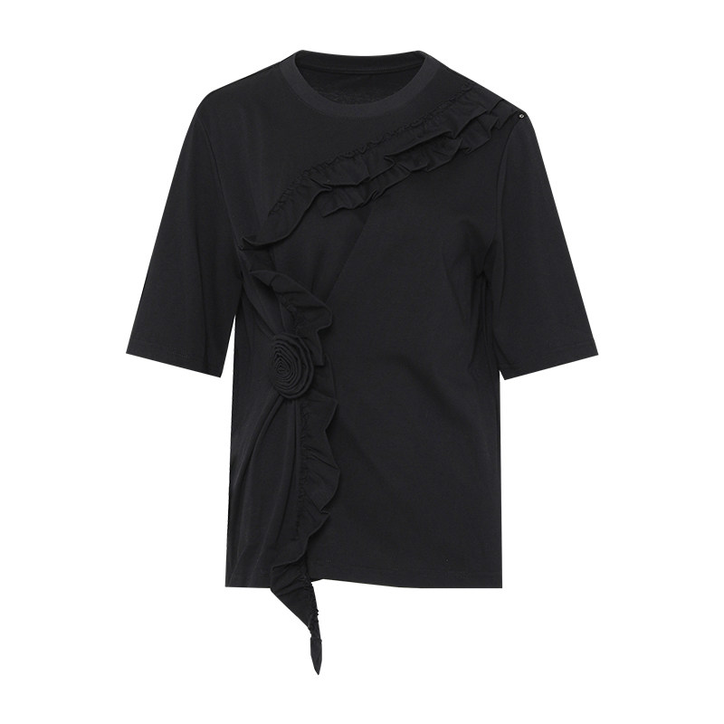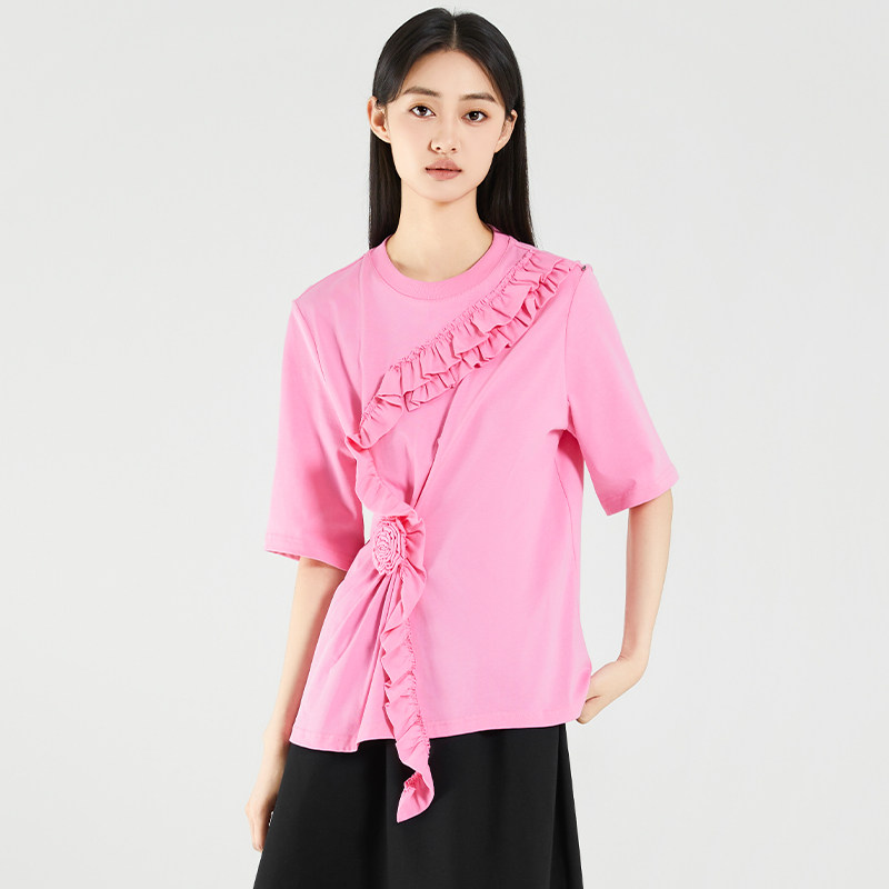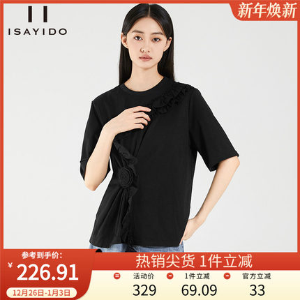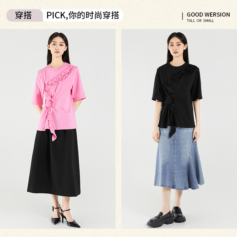 傲丝度纯棉短袖T恤女小众设计感大码宽松上衣小个子百搭小衫秋装