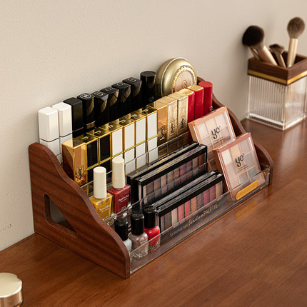 化妆品收纳盒木多层桌面置物架口红唇膏釉彩指甲油眼影香水收纳架