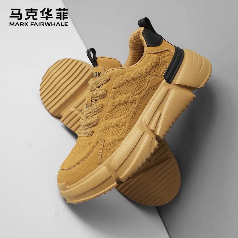 马克华菲老爹鞋男秋季厚底真皮男鞋休闲运动鞋子男款男士增高板鞋