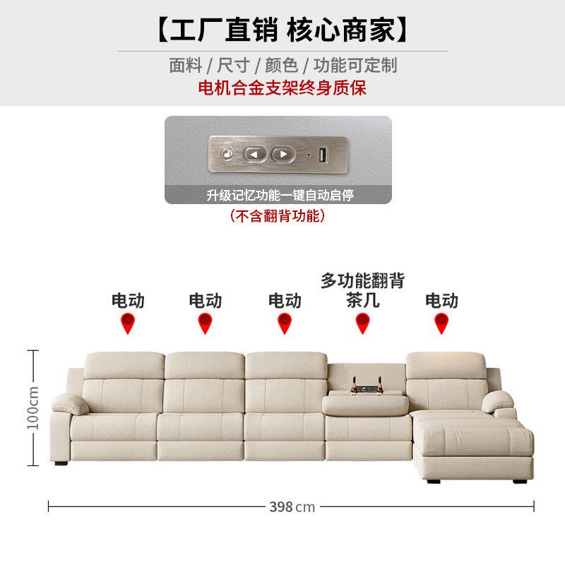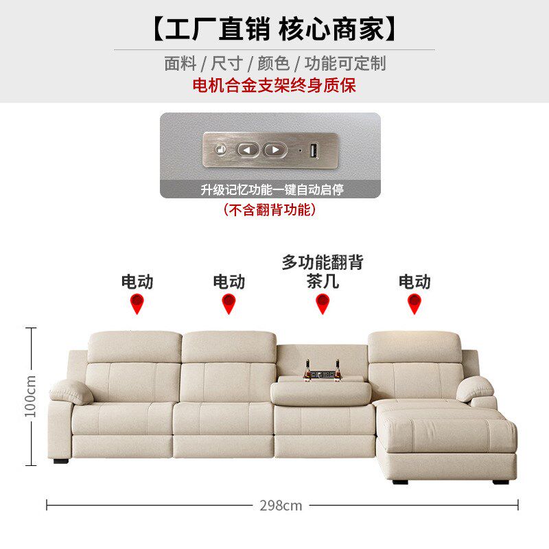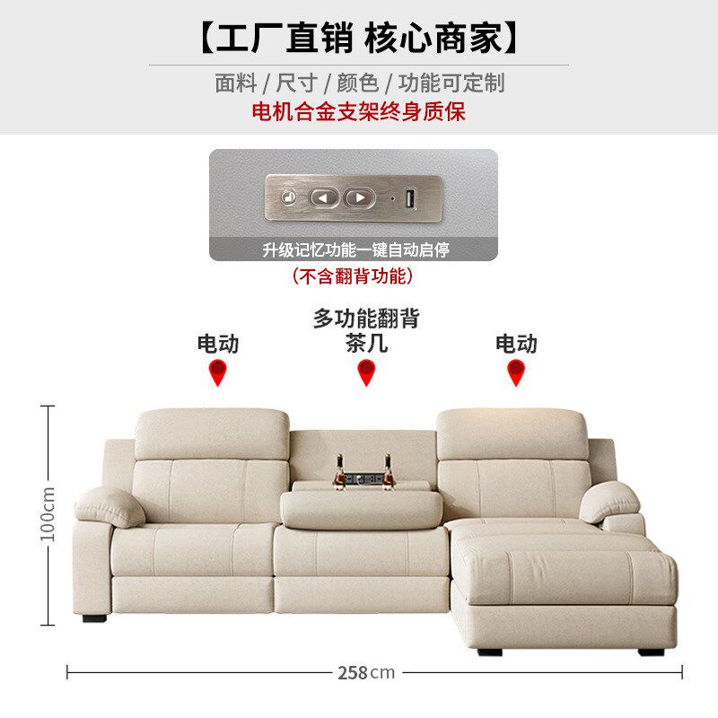 电动太空科技布多功能智能客厅贵妃靠背现代简约免洗布艺沙发组合