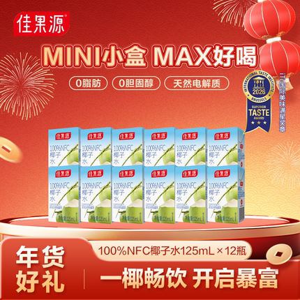 佳果源100%NFC椰子水125ml*12盒椰青水0脂补水含多种天然电解质
