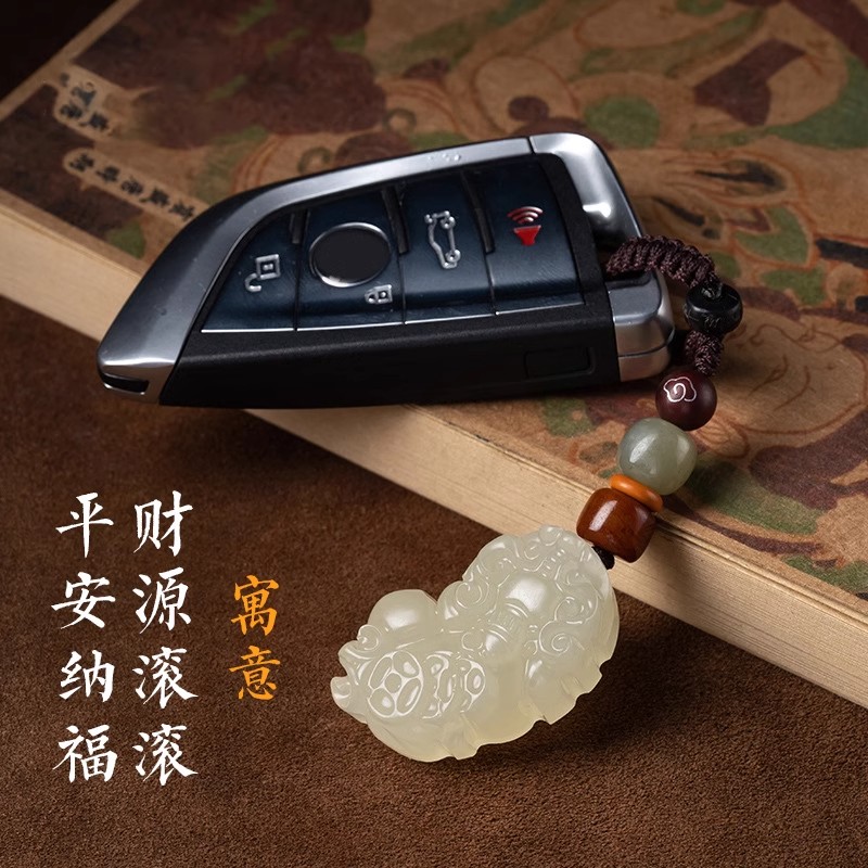 玉石貔貅钥匙扣汽车挂件转运吉祥平安复古高级感男士女招财挂饰品