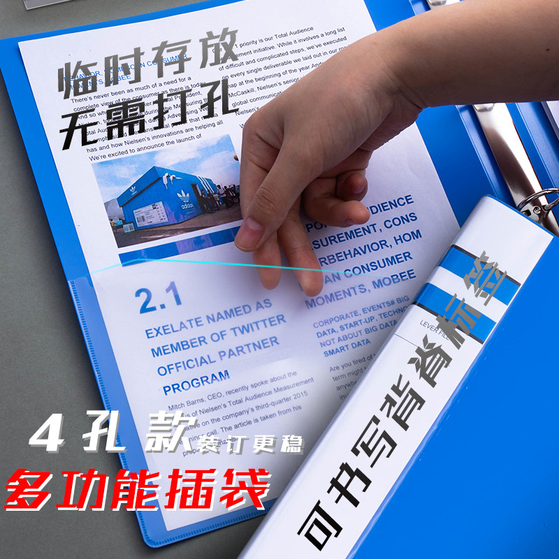 打孔文件夹a4透明彩色4孔活页夹试卷夹两孔插页双孔档案资料O型夹塑料穿孔夹办公文具四孔快劳夹收纳批发