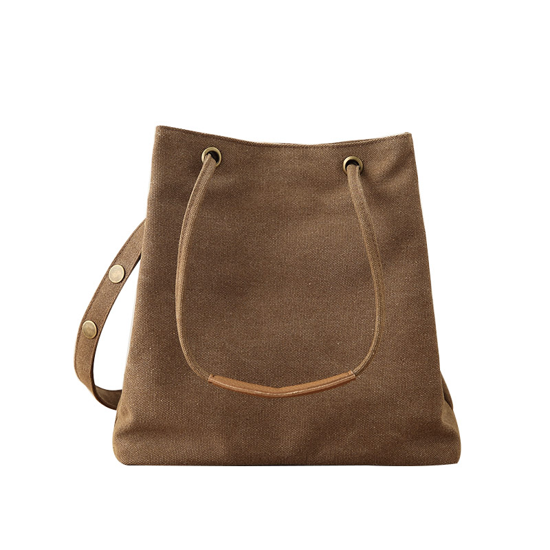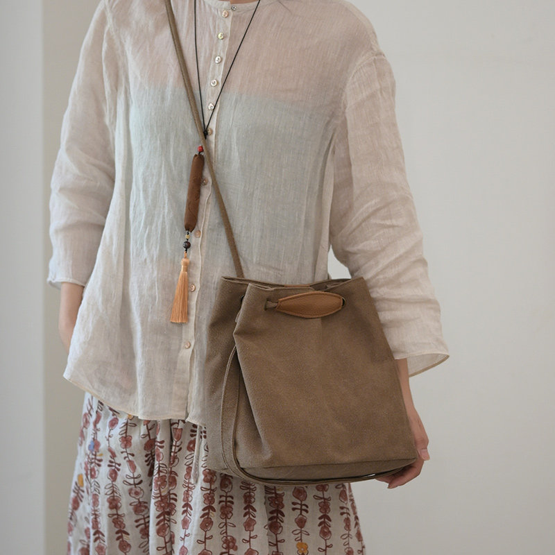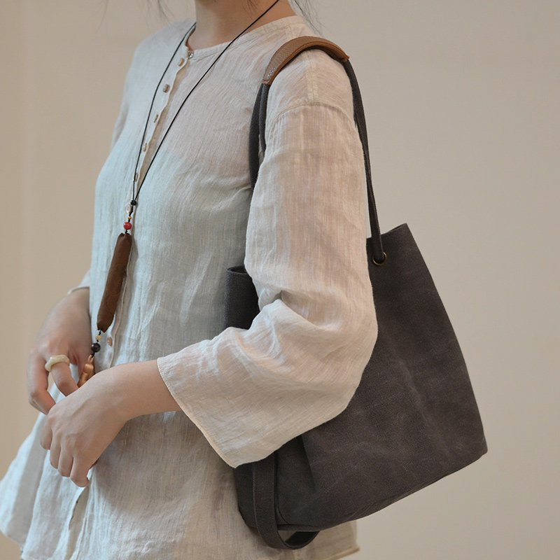 庸庸原创文艺复古小包包女帆布手提单肩包简约布包通勤水桶斜挎包