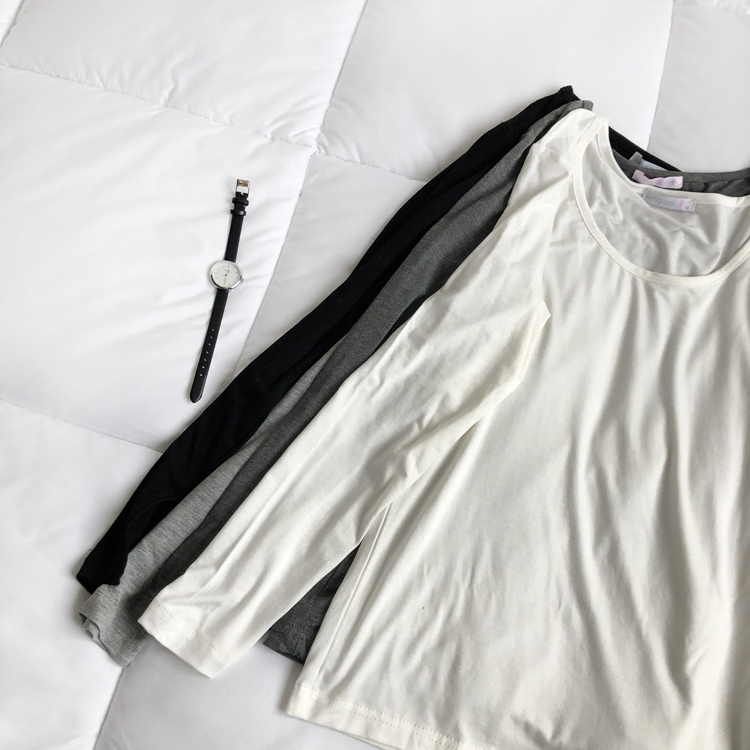 回馈价 多入几件!纯色圆领莫代尔打底衫修身长袖t恤女外穿秋衣