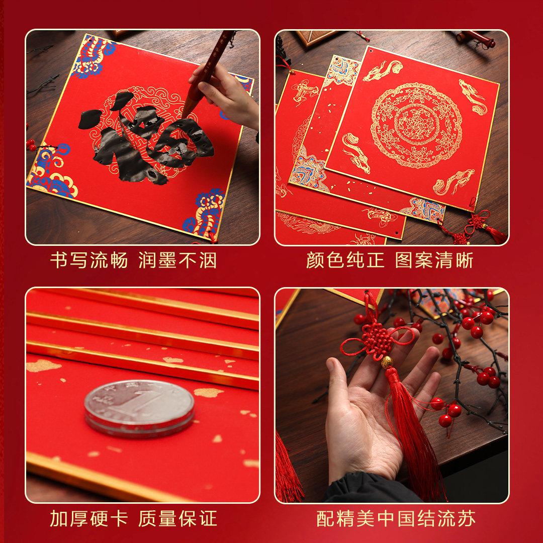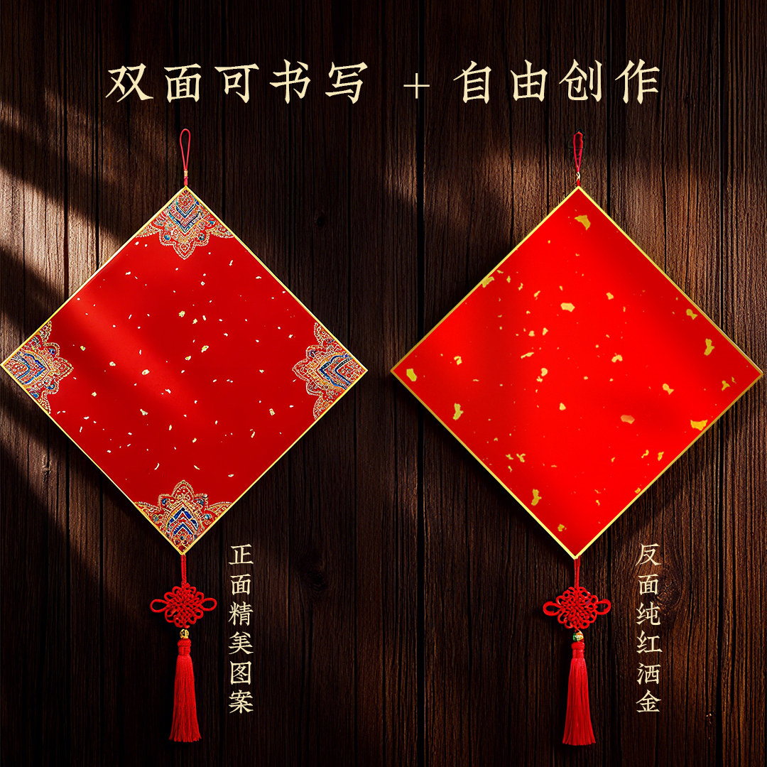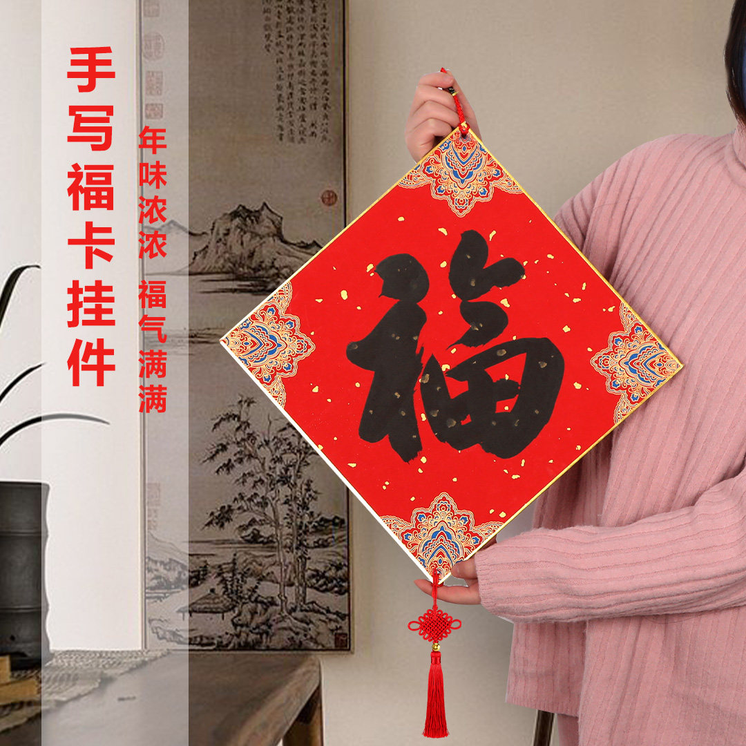 2026年马年新款福字红纸万年红空白福卡斗方挂件对联专用纸春联纸自写红色洒金福卡蜡染宣纸毛笔字书法作品纸