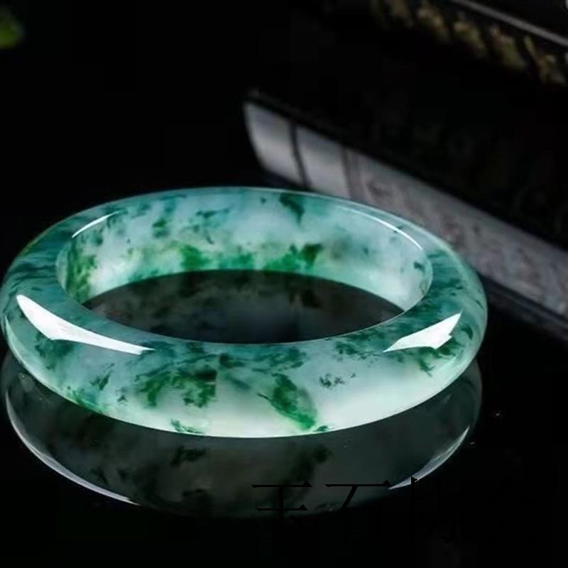 高冰透独龙玉飘花手镯危地马拉翡翠色女款玉石手镯子冰种玉镯女款