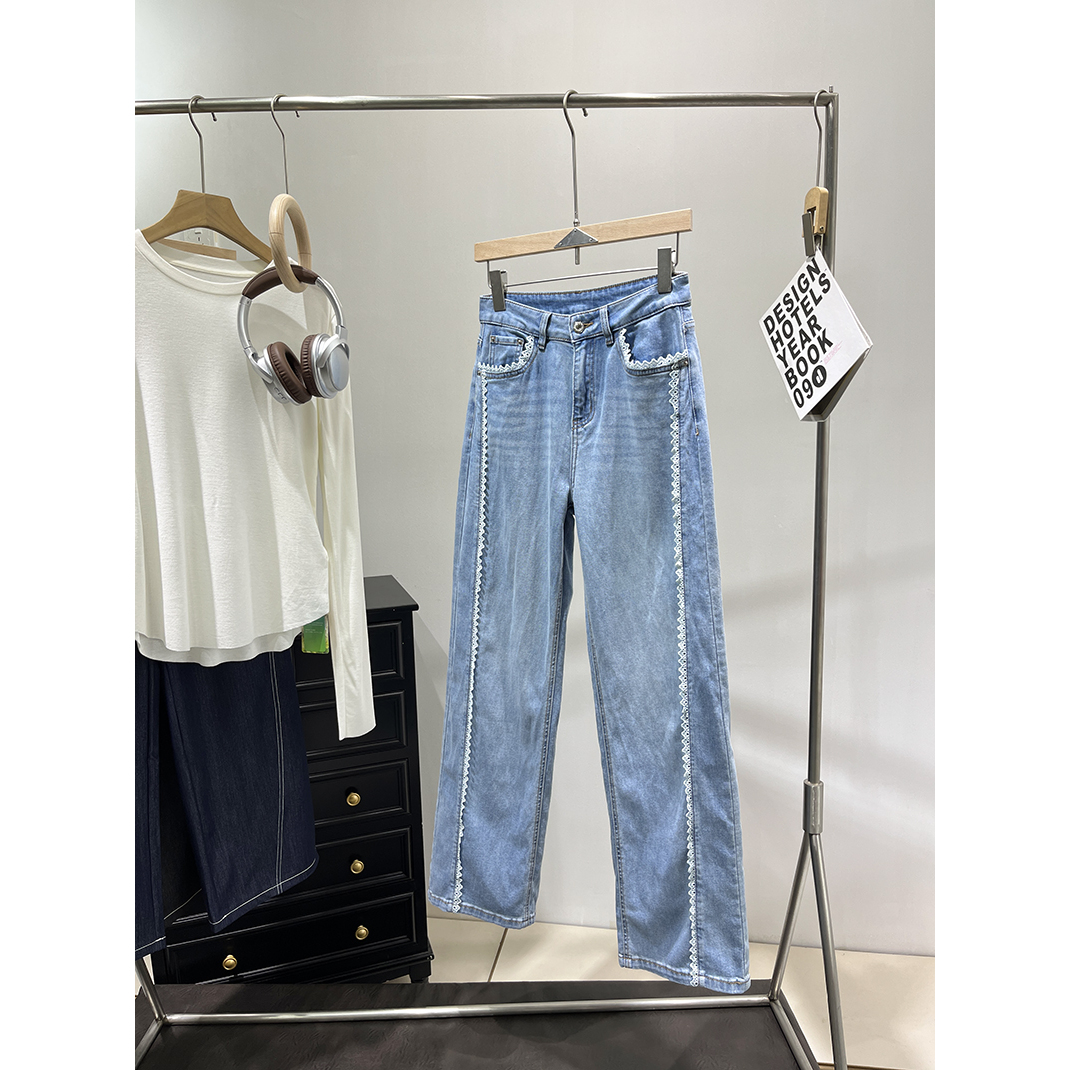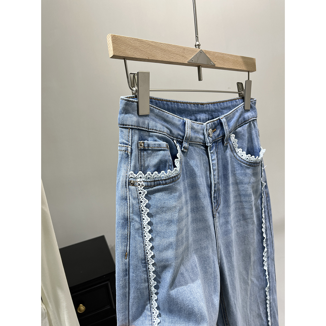 女装~重磅南法刺绣蕾丝 外贸工厂尾货春夏轻量级软牛仔拖地阔腿裤