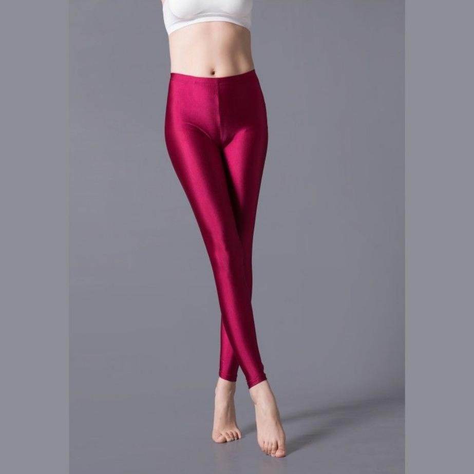 夏秋季薄款冰丝荧光打底裤外穿女丝光大码高弹九分裤糖果色光泽裤