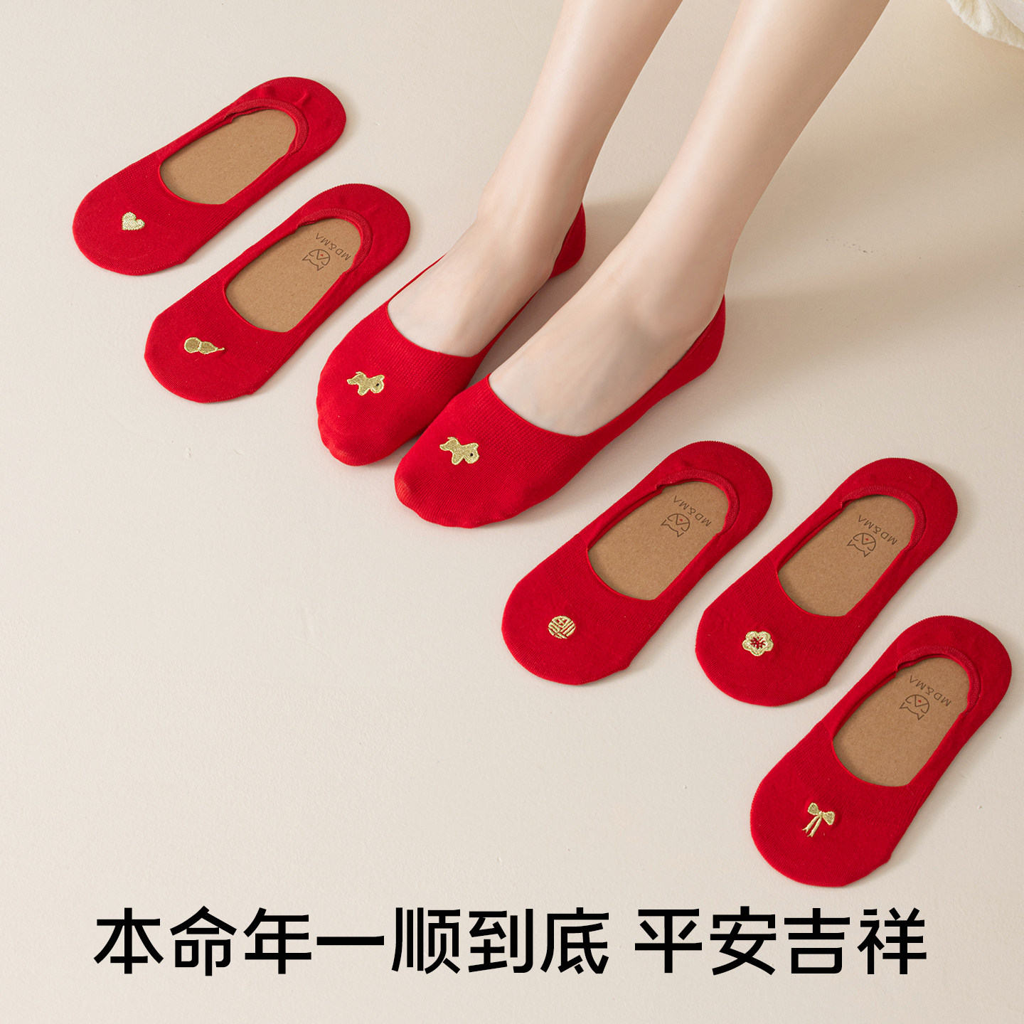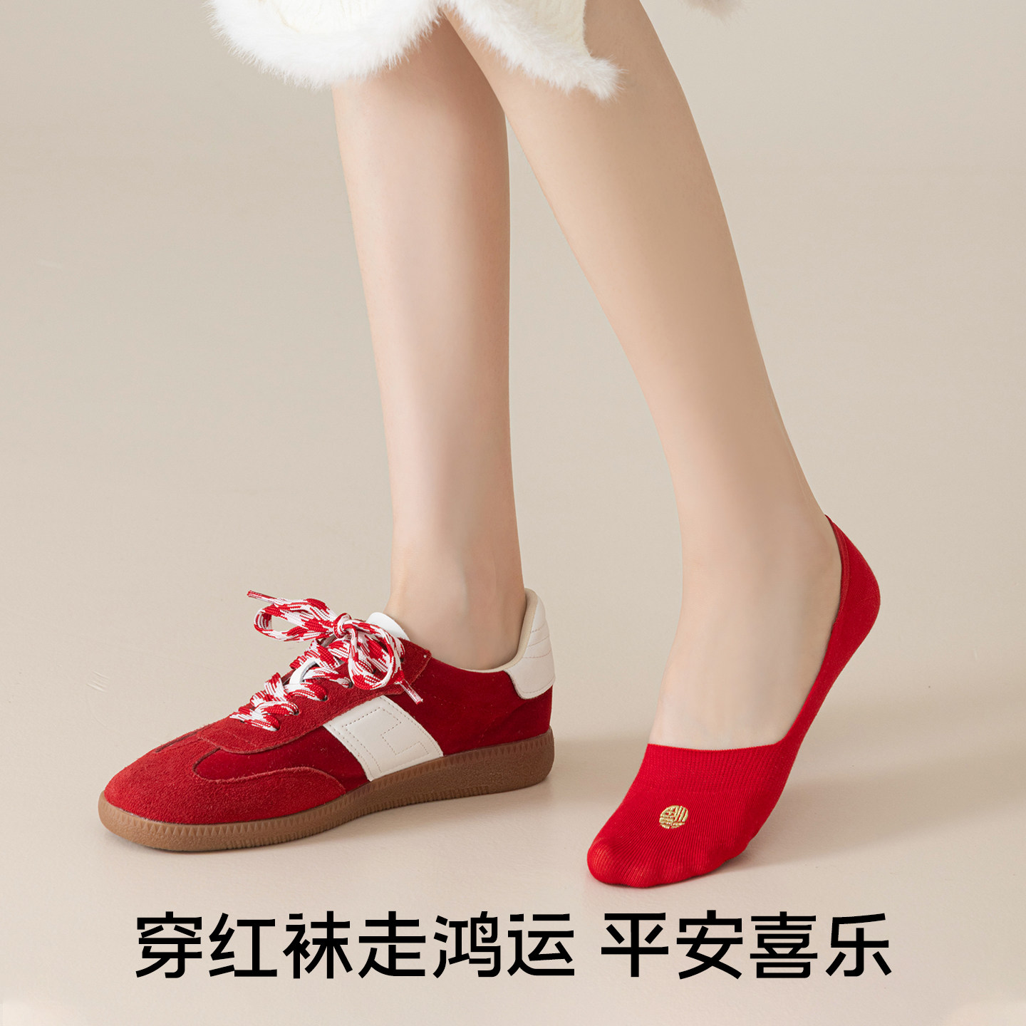 红色袜子女款本命年2026马年情侣隐形袜浅口船袜袜套结婚喜庆短袜