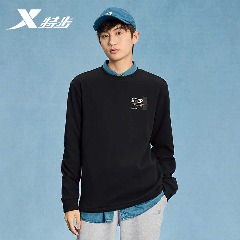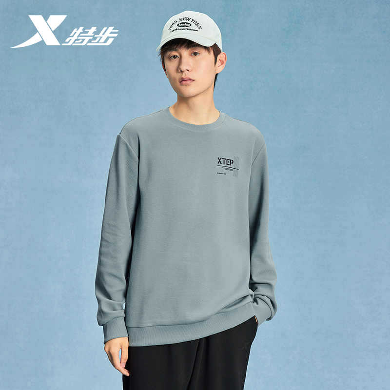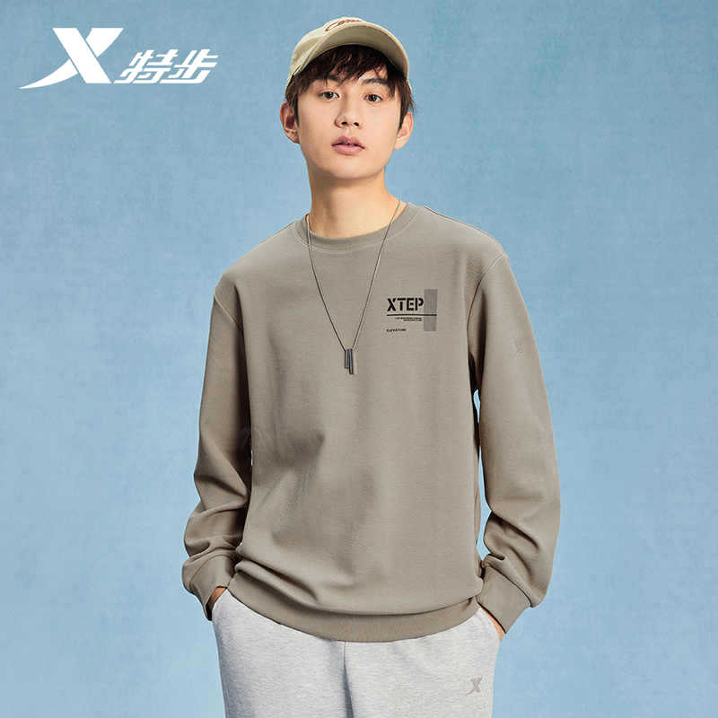 特步卫衣男2024秋季新款印花宽松套头衫休闲运动上衣976129920306