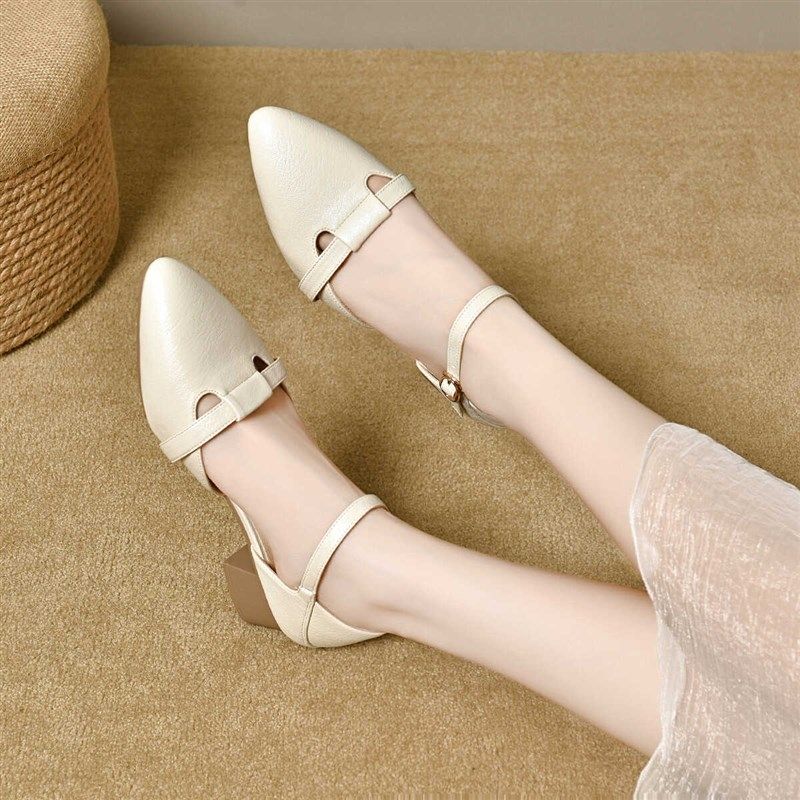 6107夏季新款女士凉鞋单鞋透气软底粗跟尖头中跟百搭时尚单鞋皮鞋