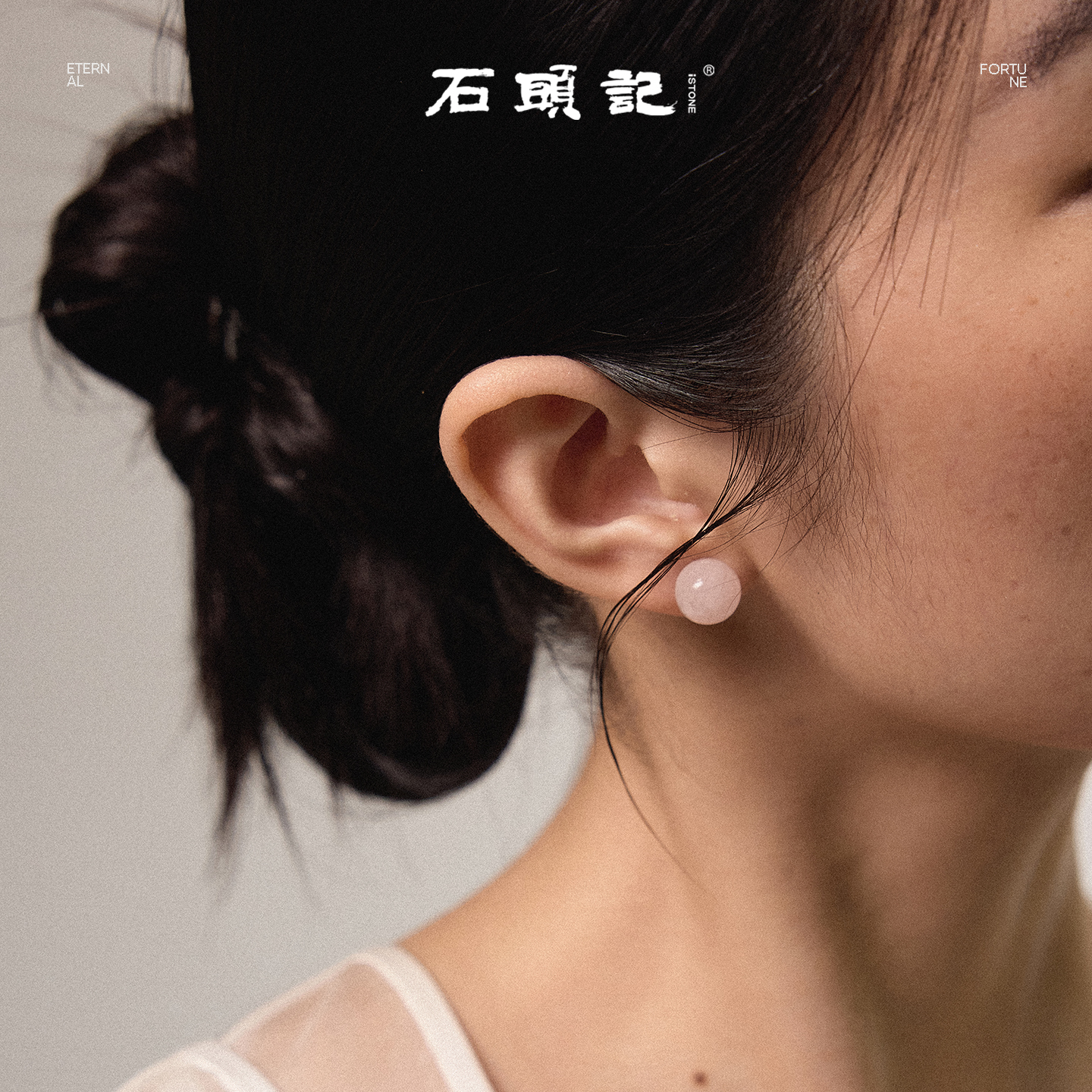 iSTONE/石头记天然粉水晶耳钉新中式925银耳环耳夹2025新款高级感