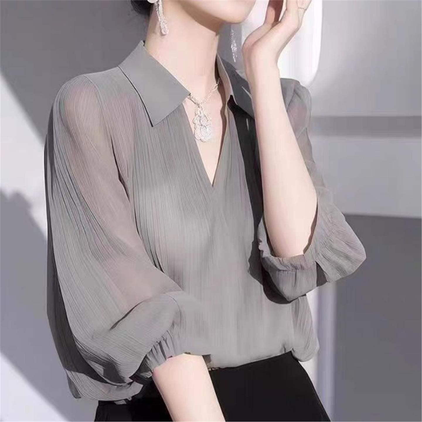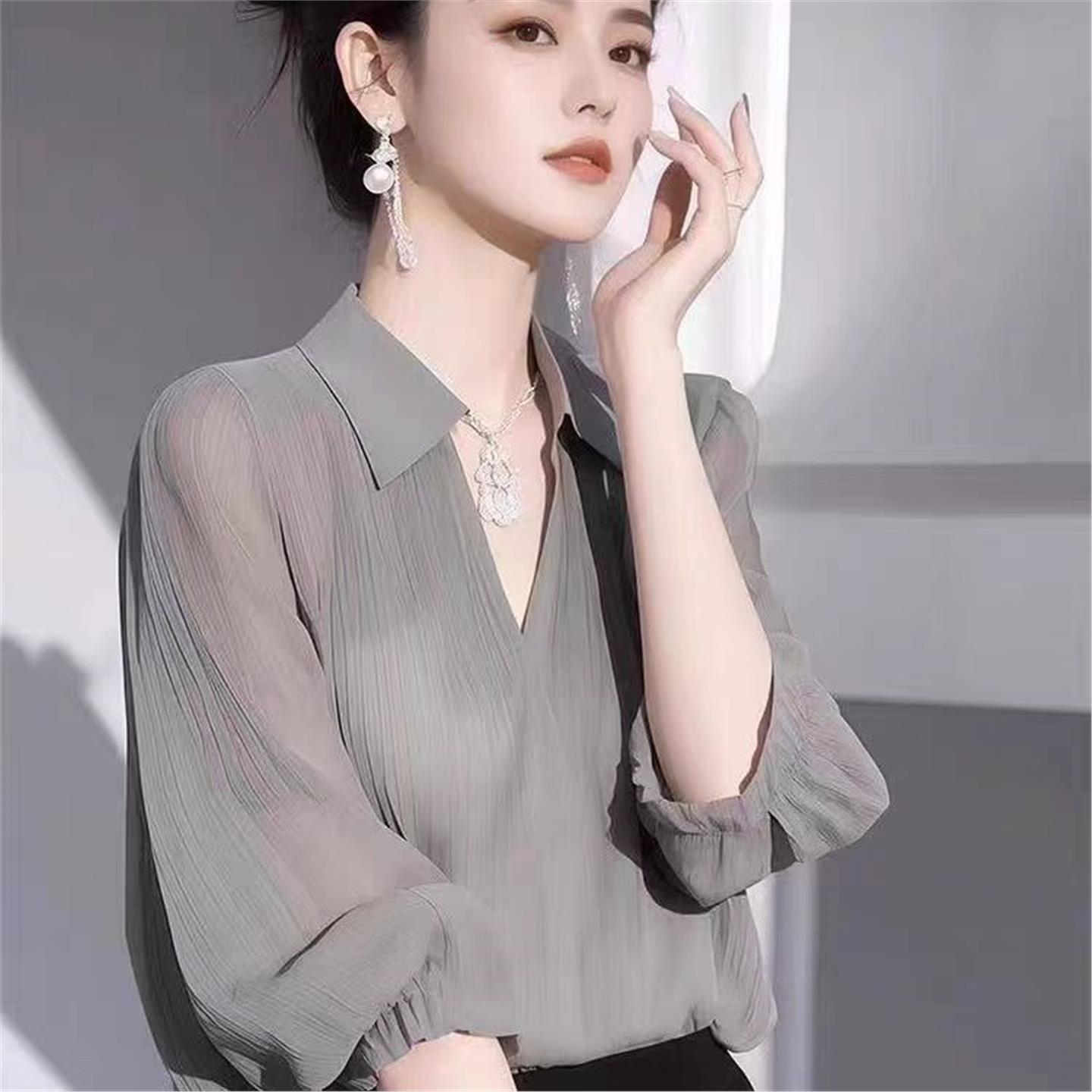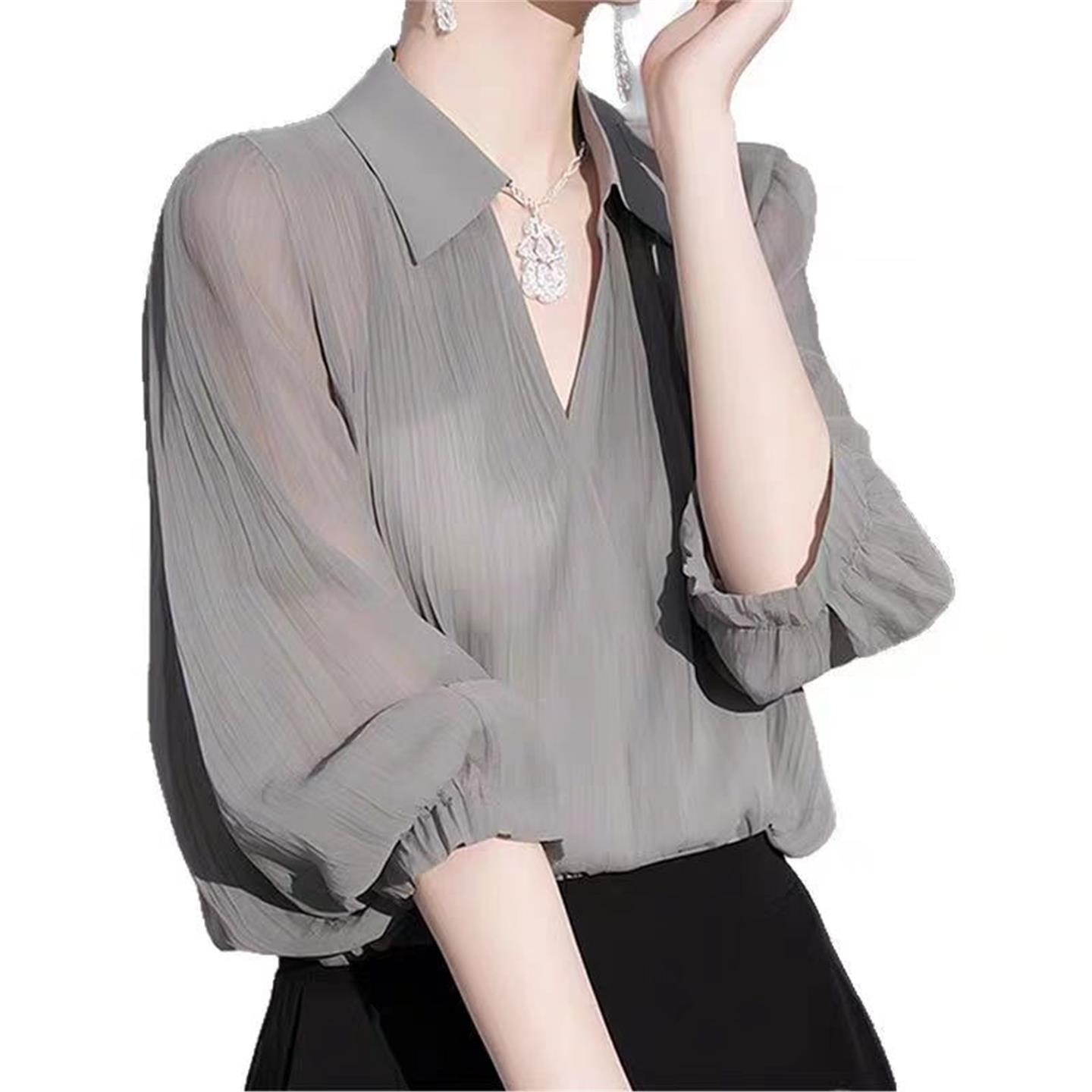 哥弟清仓官方女装2025夏季新款V领休闲雪纺衬衫法式薄款衬衣
