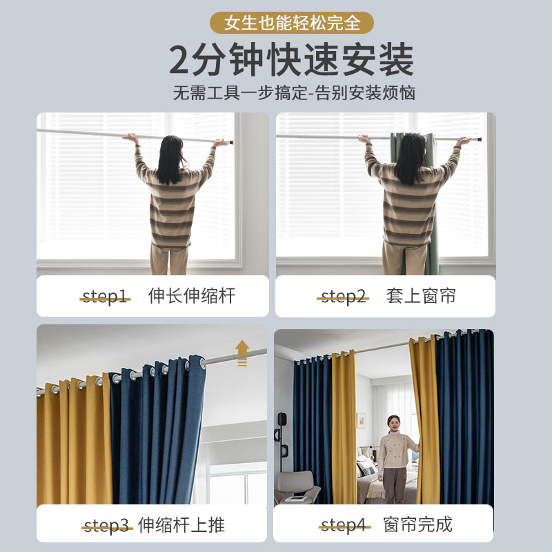 免打孔窗帘伸缩杆一整套简易安装全遮光阳布2020小卧室2021年新款