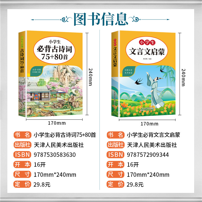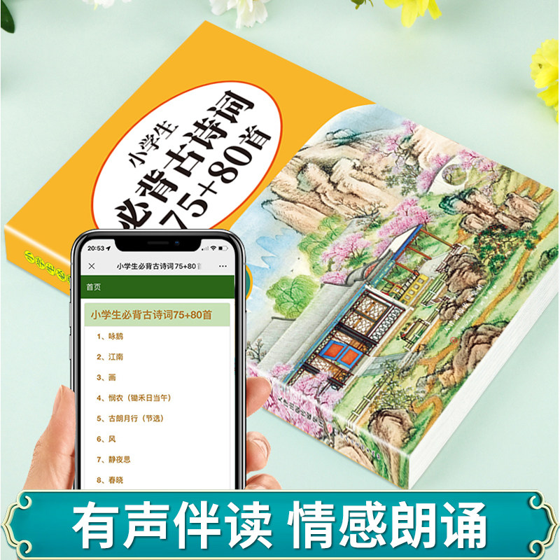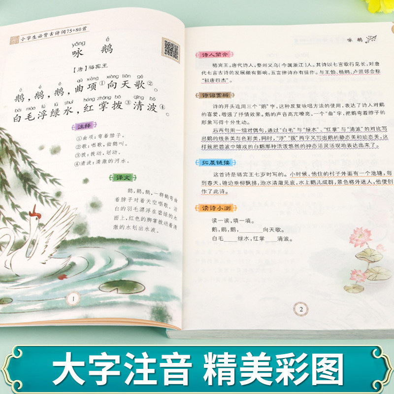 小学生必背古诗词75十80首人教版 中国古诗词大全语文新课标唐诗宋词三百首正版全集小学生必背文言文启蒙阅读与训练彩图注音版