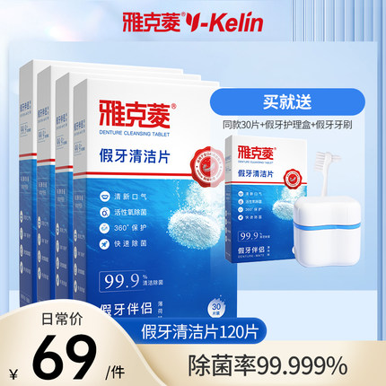 雅克菱假牙清洁片120片老年泡保持器牙套泡腾清洗剂液水泡腾