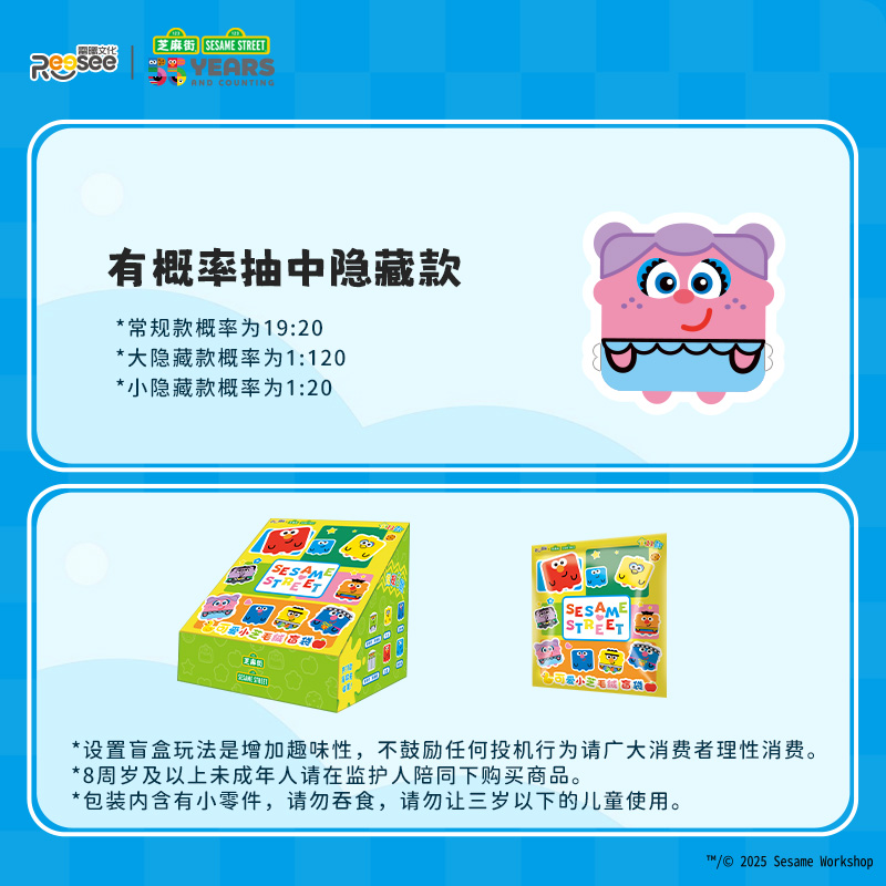 雷曦芝麻街可爱小芝毛绒盲袋正版玩偶公仔挂件盲盒周边女生挂饰