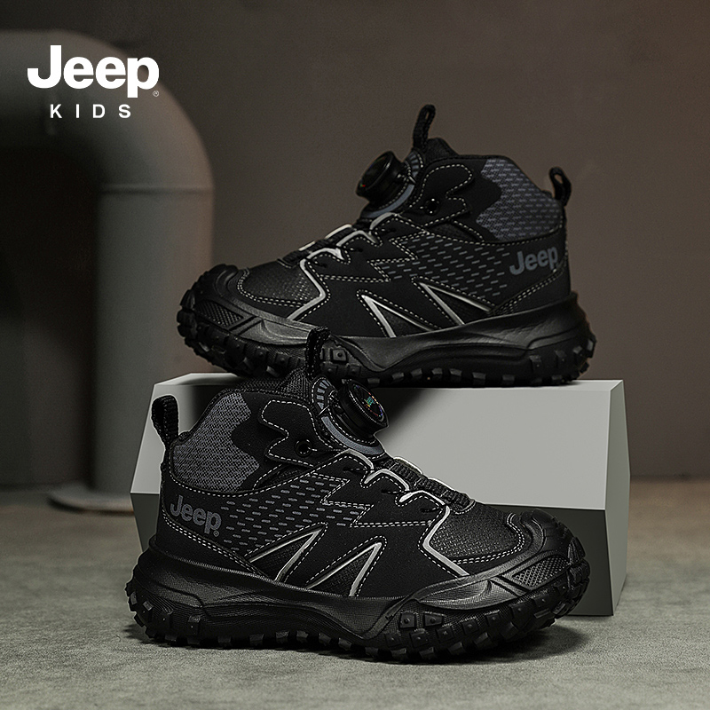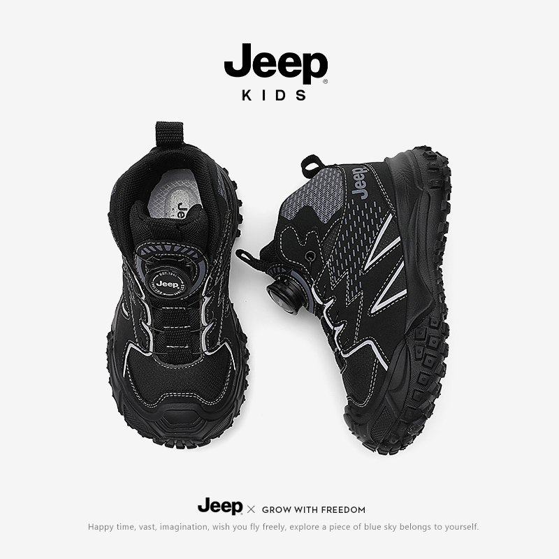 Jeep童鞋男童黑色老爹鞋春秋2025新款软底儿童运动鞋旋钮女童鞋子